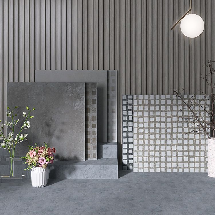 Square Mixed Material Singular Tile in Gray 24" x 24" for Indoor Floor