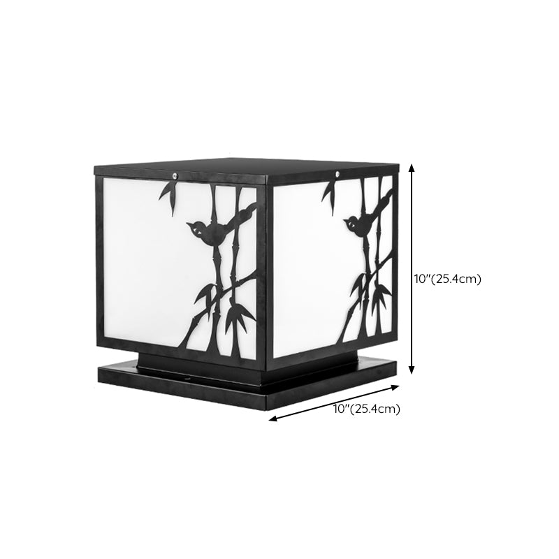 Square Shape Metal Waterproof Pillar Lamp Modern-Style 1 Light Outdoor Light in Black