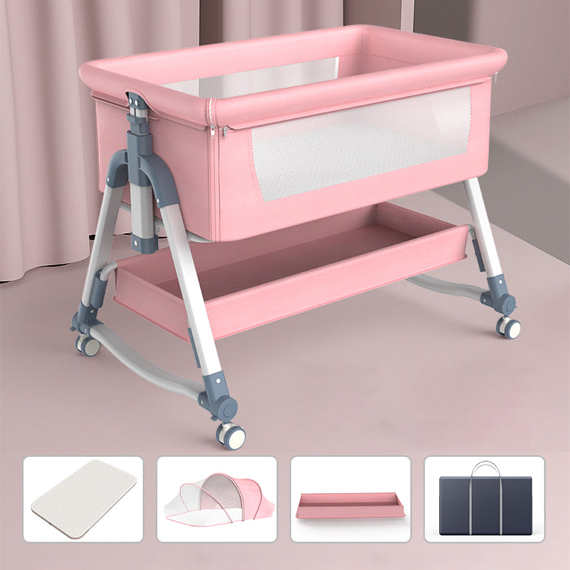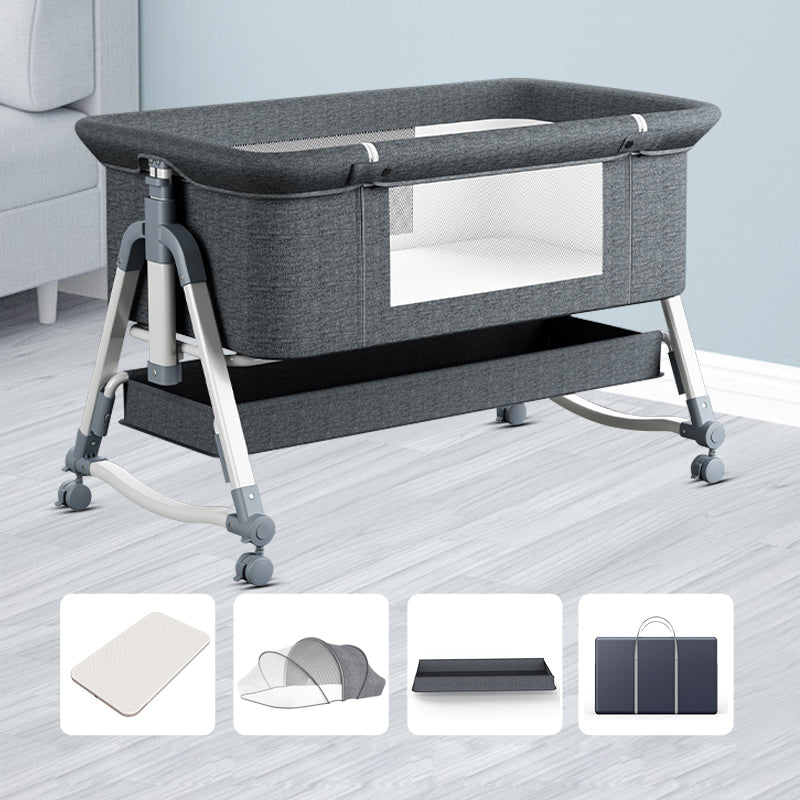 Adjustable Height Baby Crib Modern Mini Nursery Crib with Carry Bag and Storage