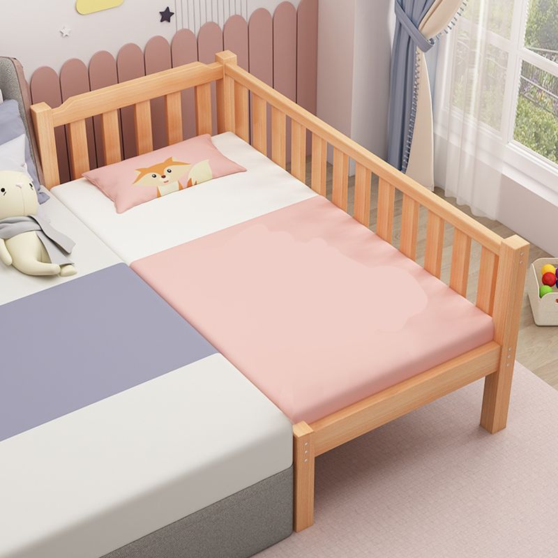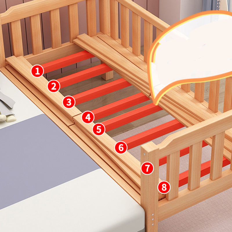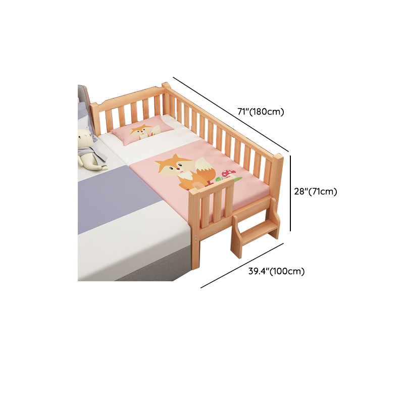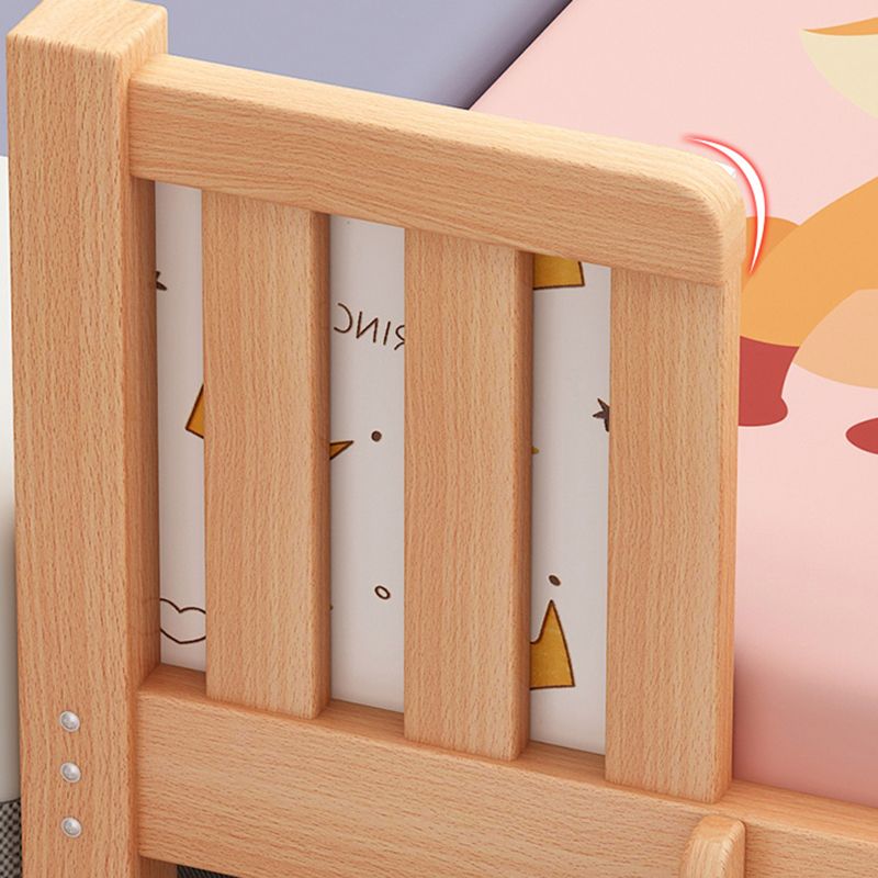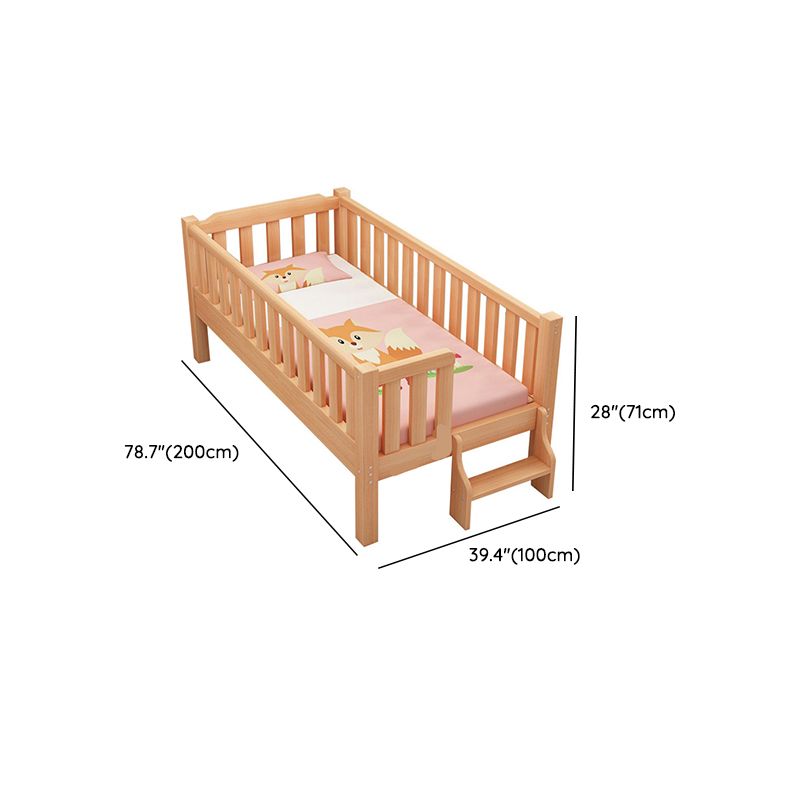 Contemporary Nursery Crib with Guardrail in Natural Beech Wood
