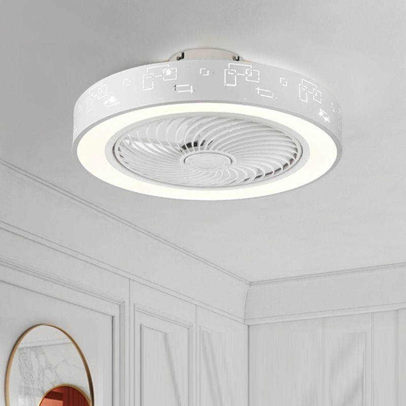 Drum Semi Flush Ceiling Light Modern Metal Bedroom LED Fan Light Fixture