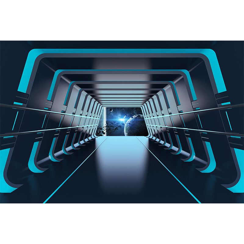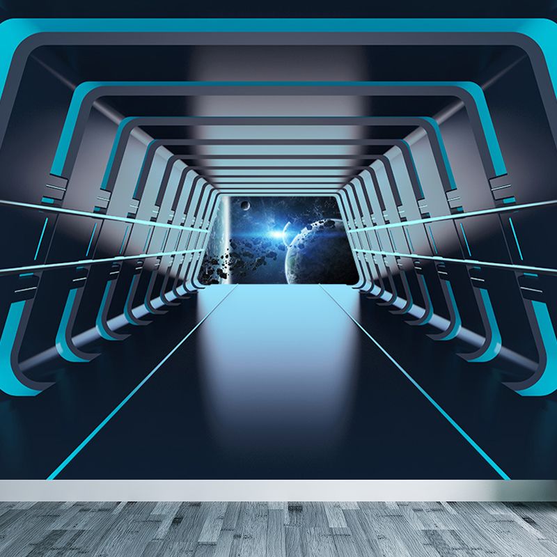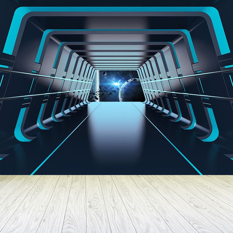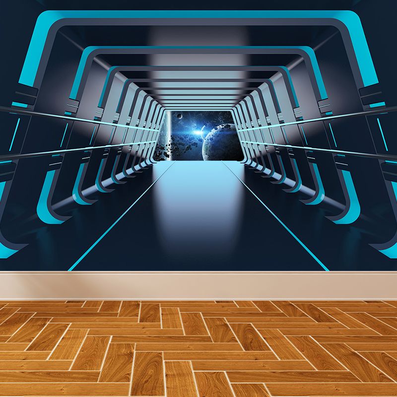 Futuristic Spaceship Hallway Mural Decal for Living Room Personalized Wall Art in Bright Color