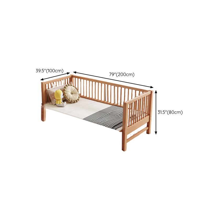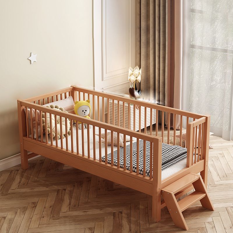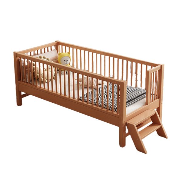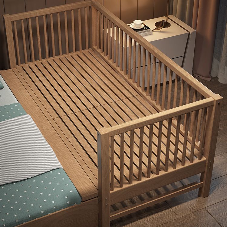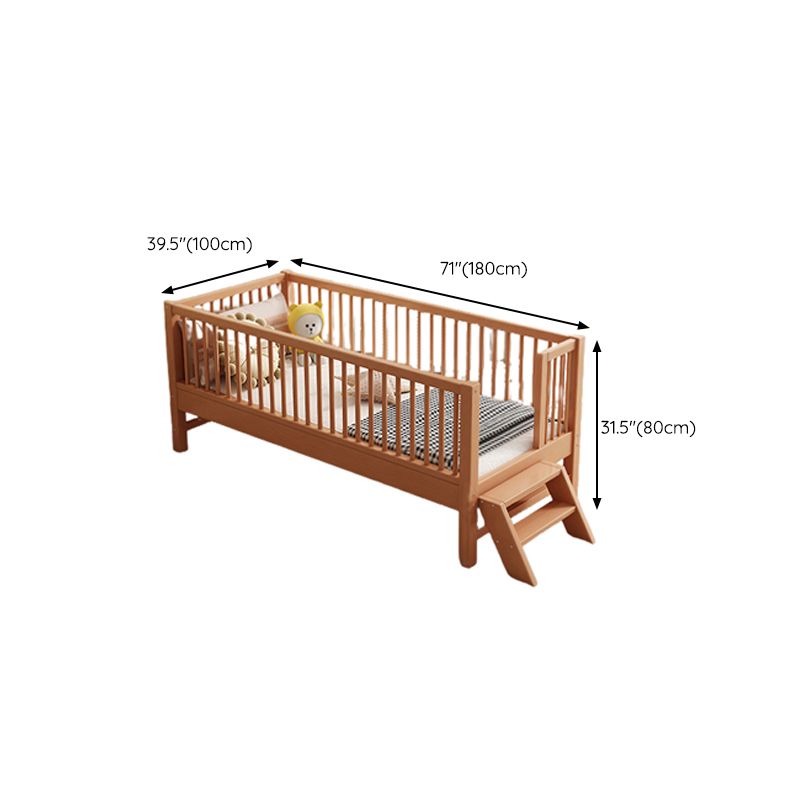 Glam Brown Solid Wood Nursery Bed Guardrail Rectangle Baby Crib