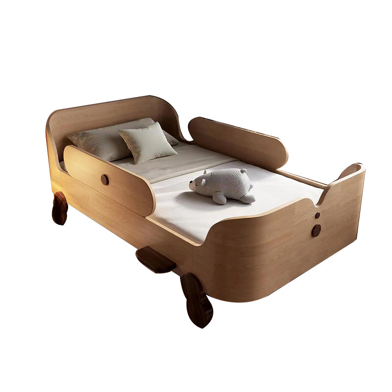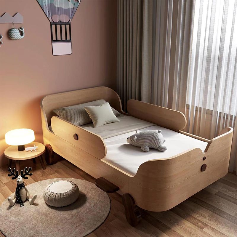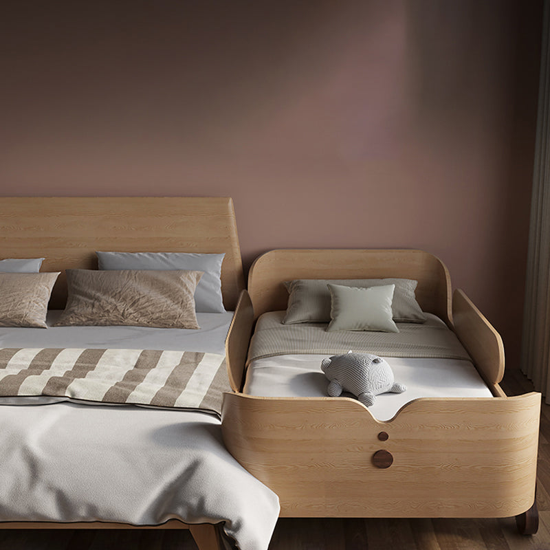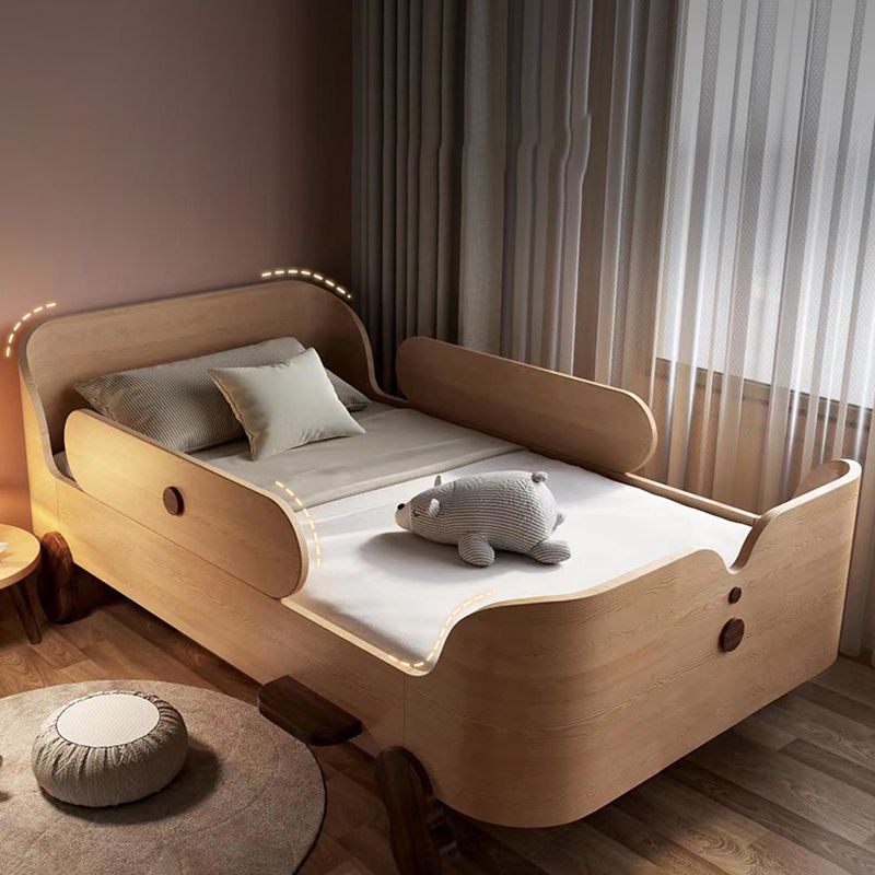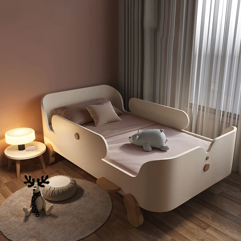 Glam Style Solid Wood Nursery Bed with Guardrail in White/Natural