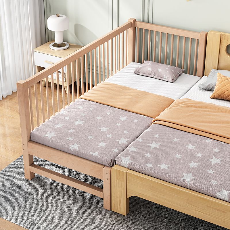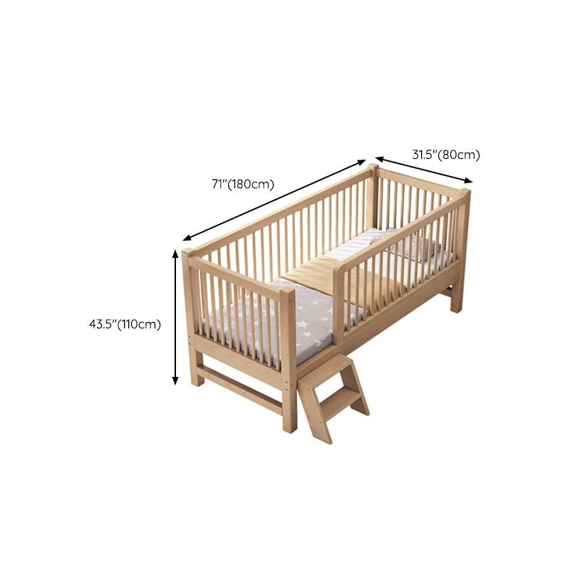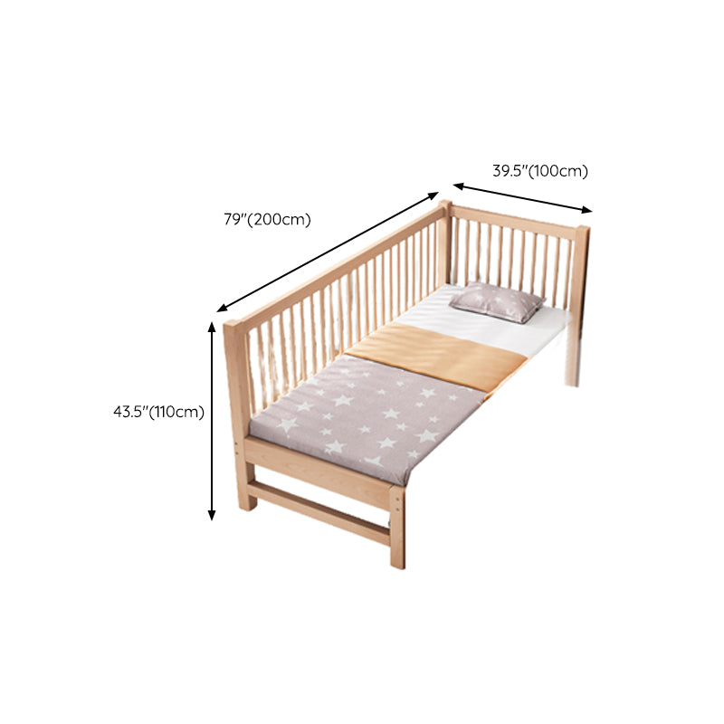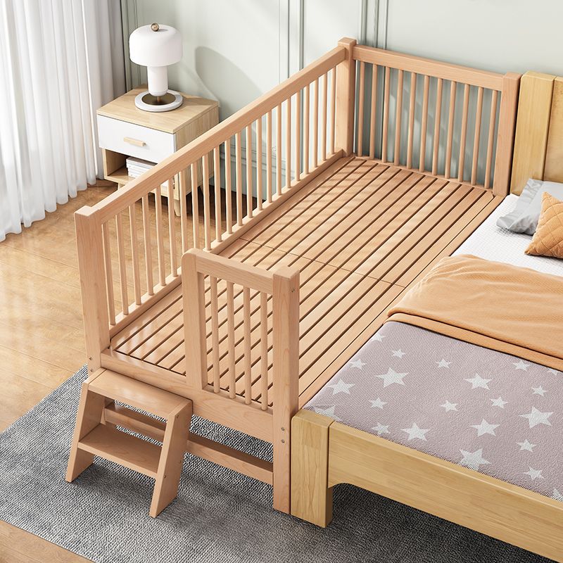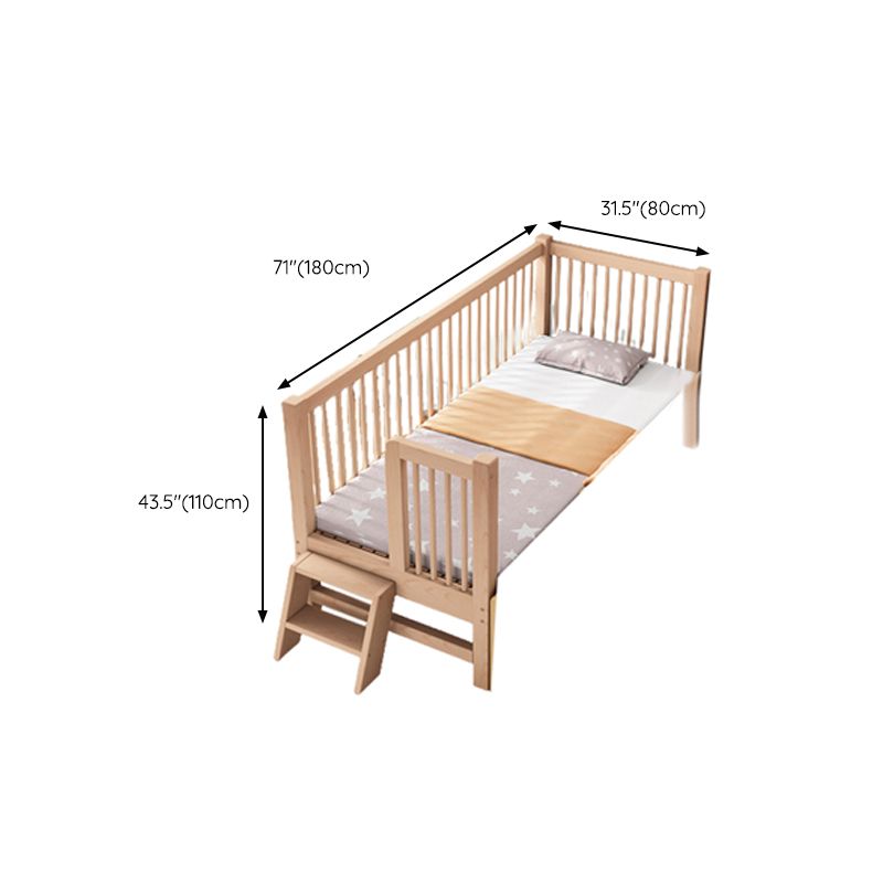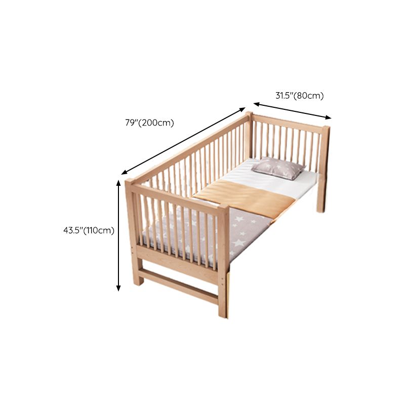 Modern Nursery Crib with Guardrail Washed Natural Wood Beech Nursery Bed