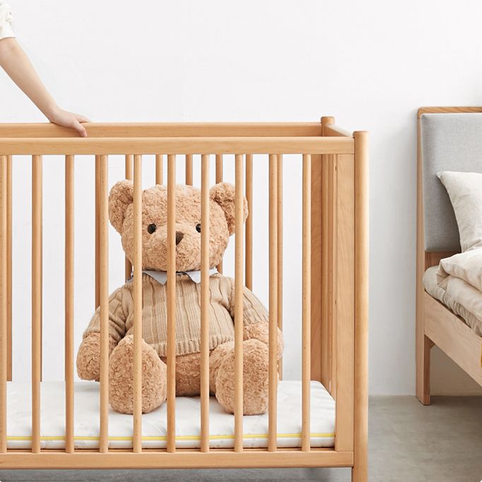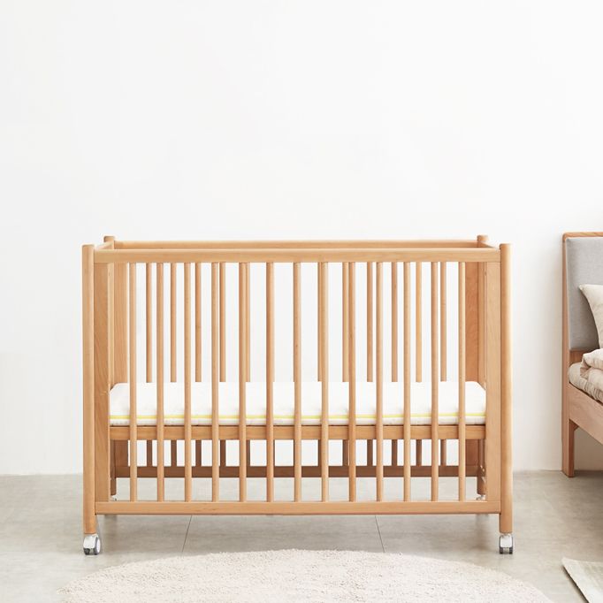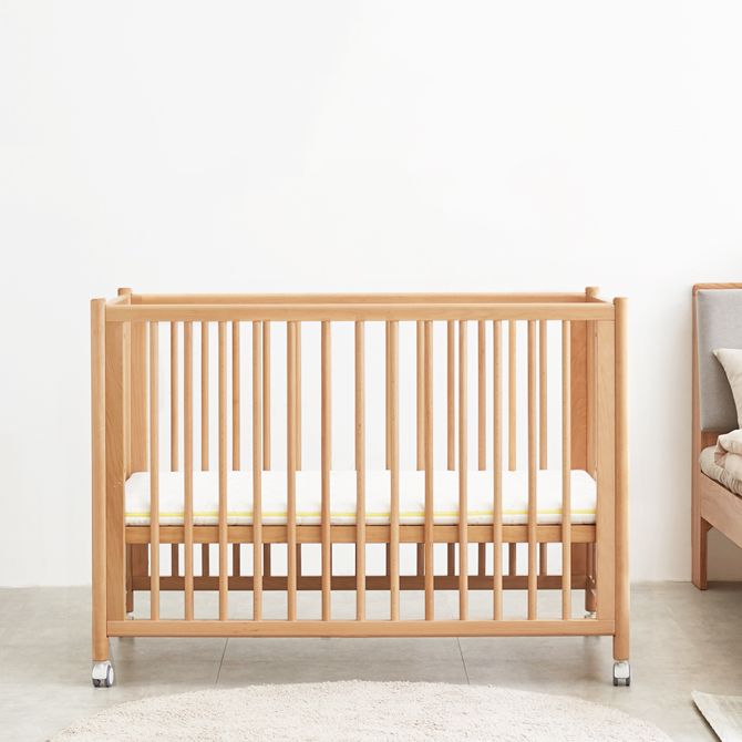 Modern Style Rectangle Crib Home Solid Wood Crib with Wheels