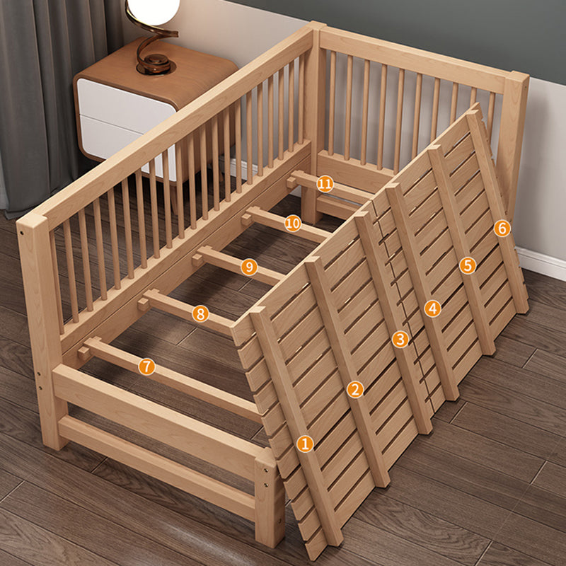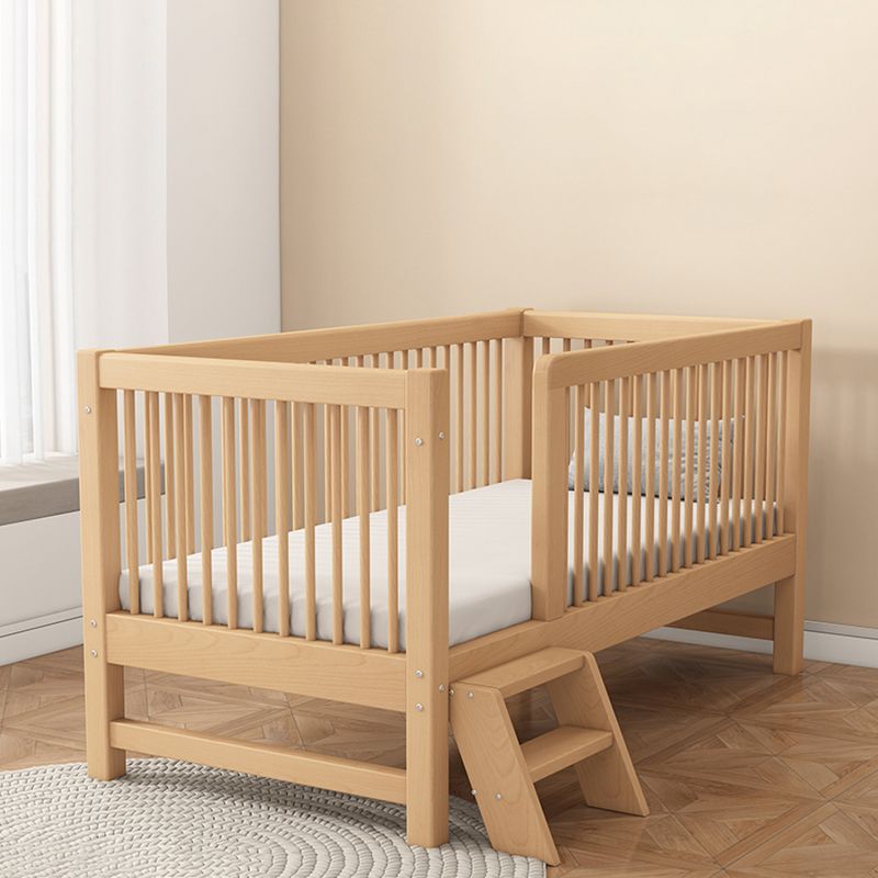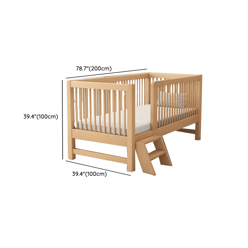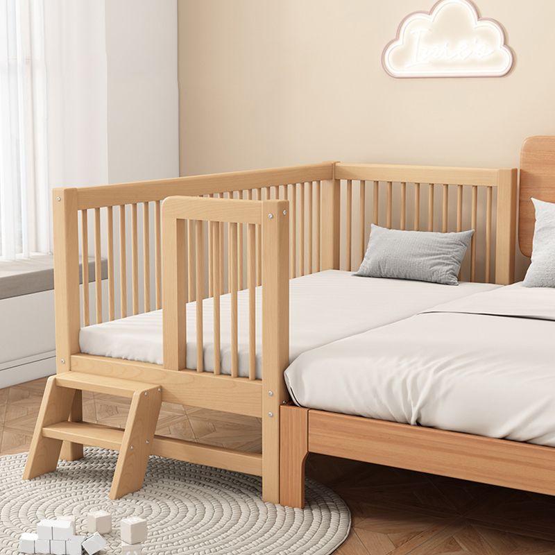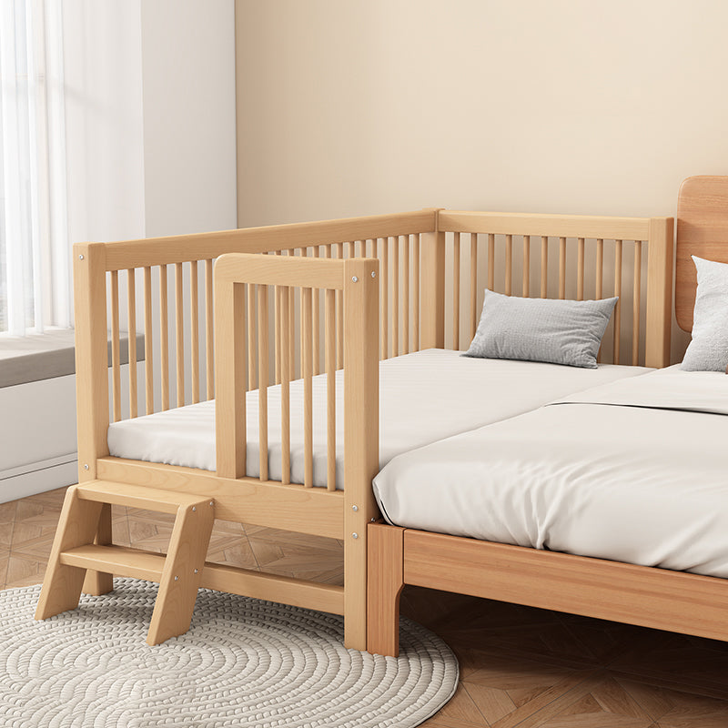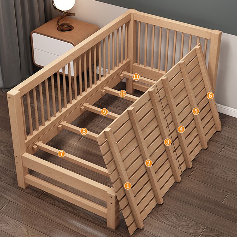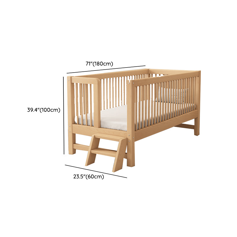 Natural Farmhouse Nursery Crib in Solid Wood with Guardrail Crib