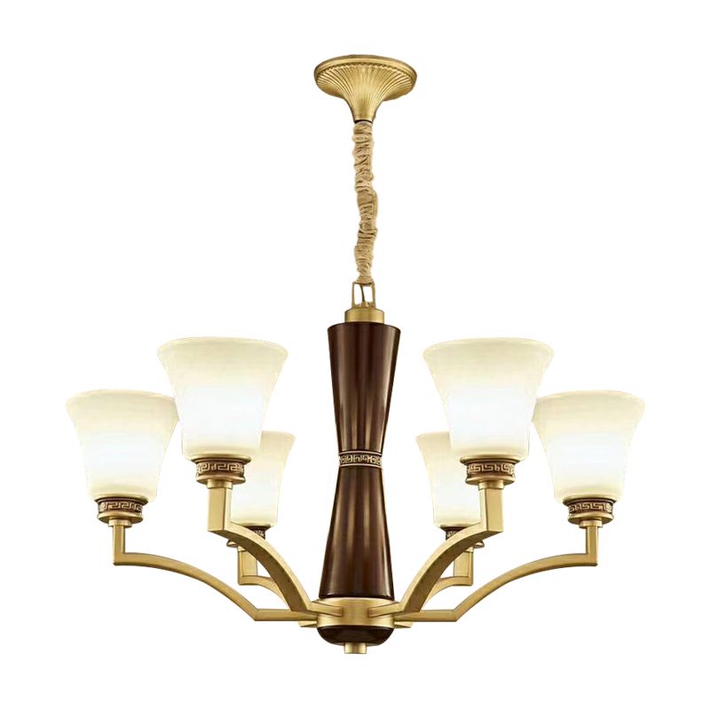Brown 6/8 Heads Ceiling Chandelier Traditional Style Milky Glass Flower Shaped Hanging PendantBrown 6/8 Heads Ceiling Chandelier Traditional Style Milky Glass Flower Shaped Hanging Pendant