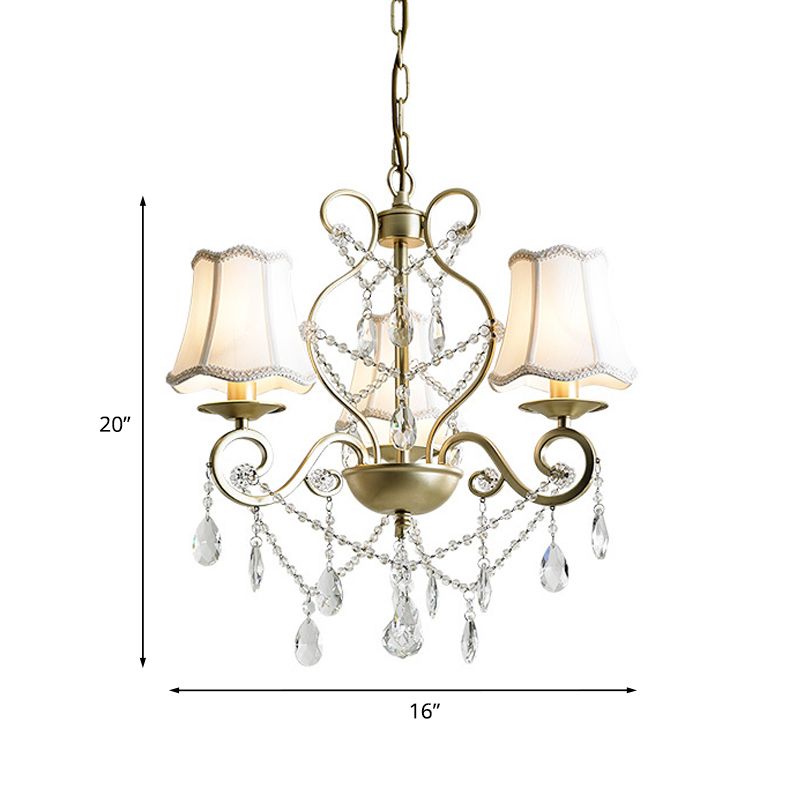 3 Heads Pendant Chandelier with Empire Shade Crystal Raindrop Retro Dining Room Suspended Lighting Fixture in Gold3 Heads Pendant Chandelier with Empire Shade Crystal Raindrop Retro Dining Room Suspended Lighting Fixture in Gold