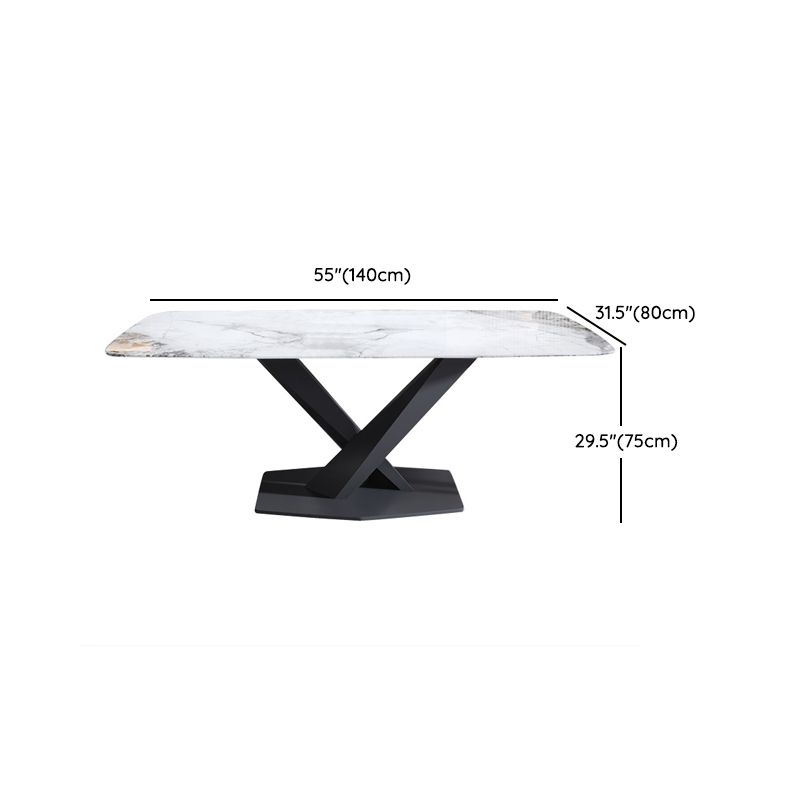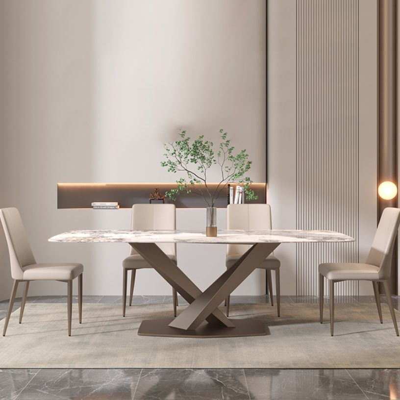 Contemporary Rectangle Sintered Stone Top Metal Base Dining Table Set