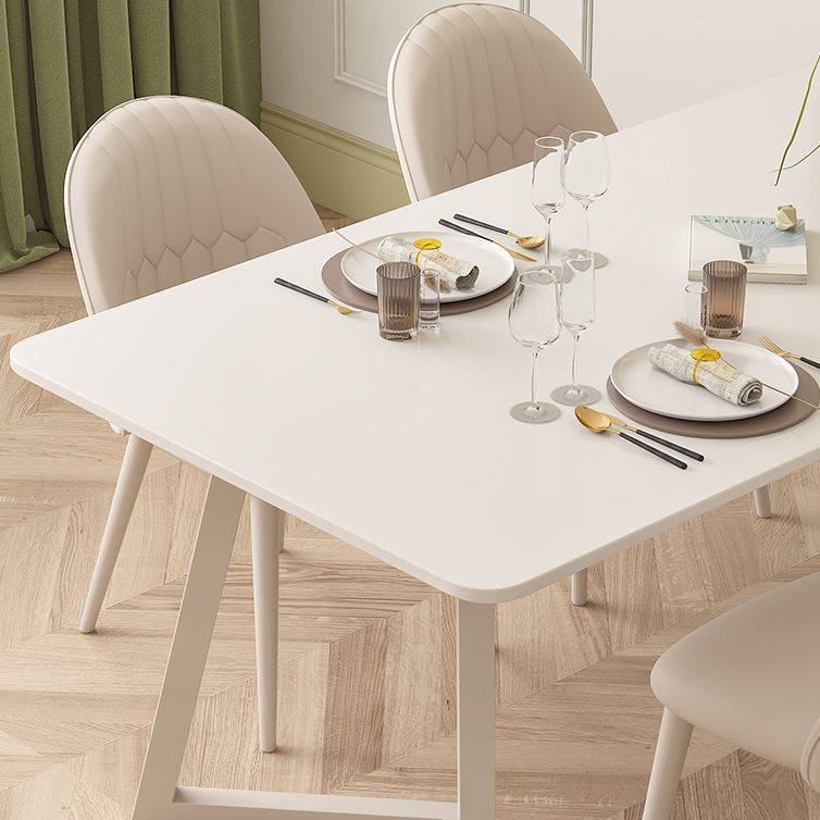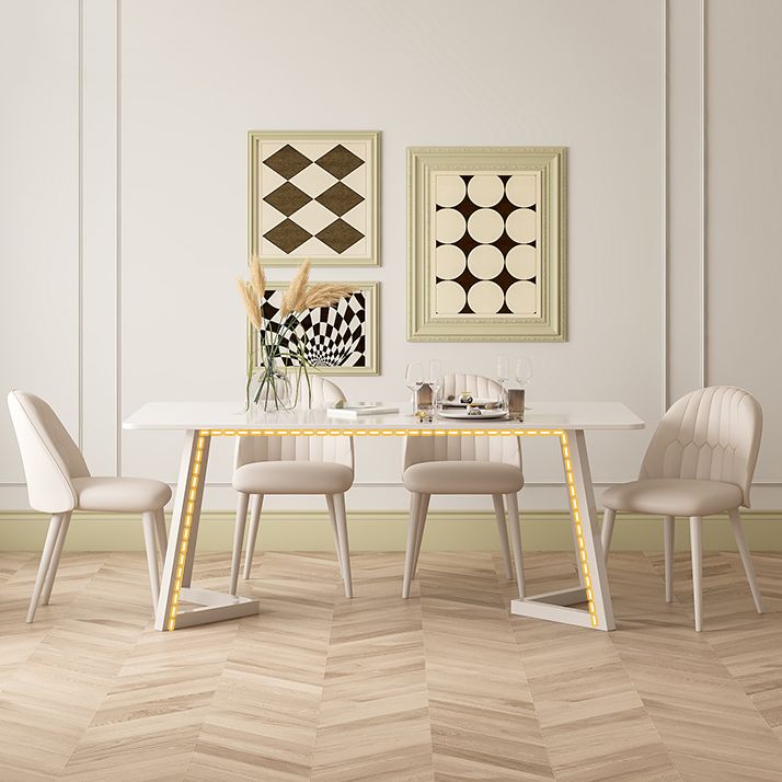 Contemporary Sintered Stone Top Metal Base Dining Table with Chairs in White
