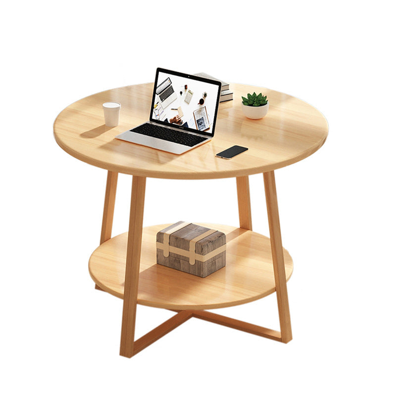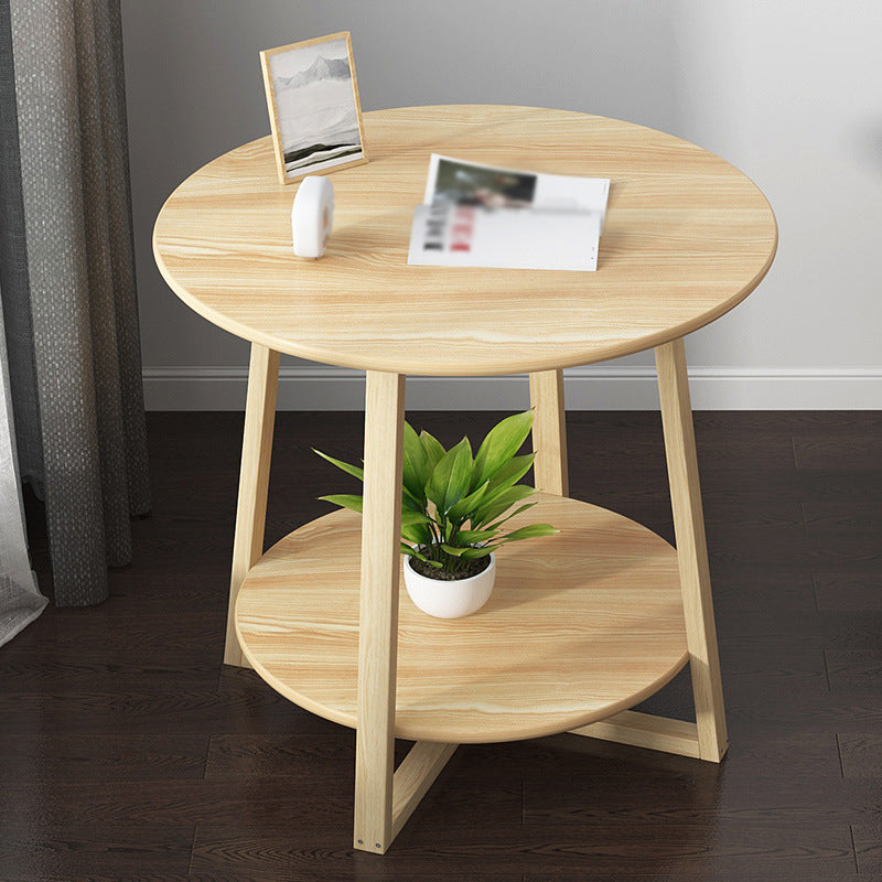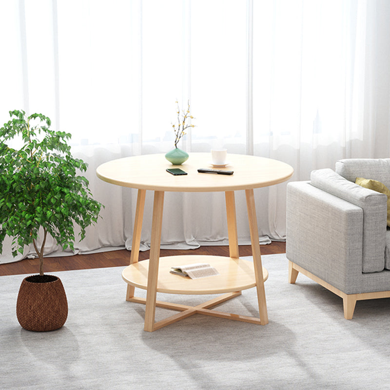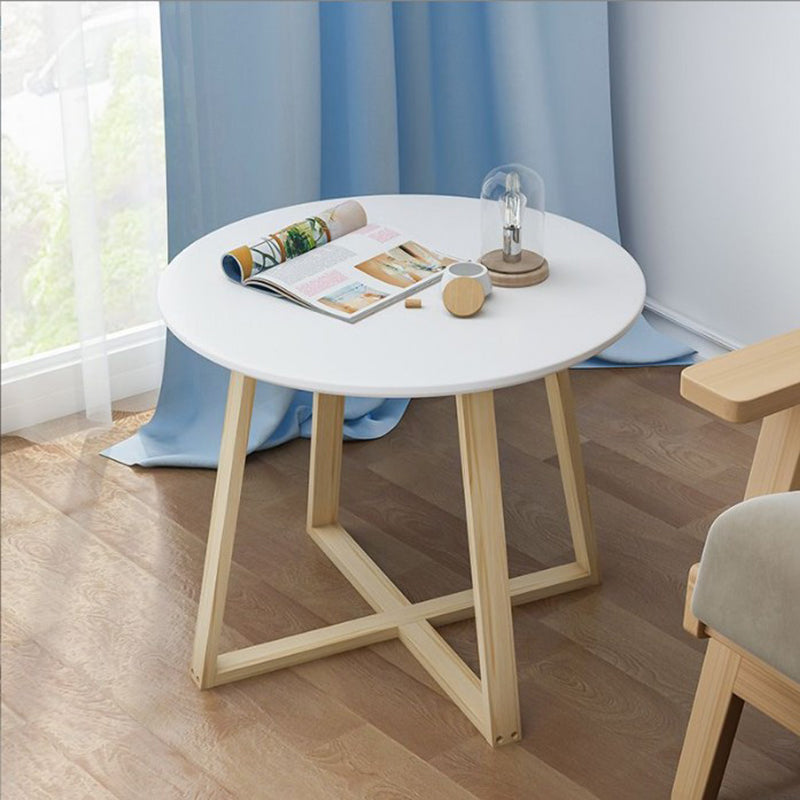 27.5" Tall Cross Legs Side Table Wood Natural/ White Round Side End Table