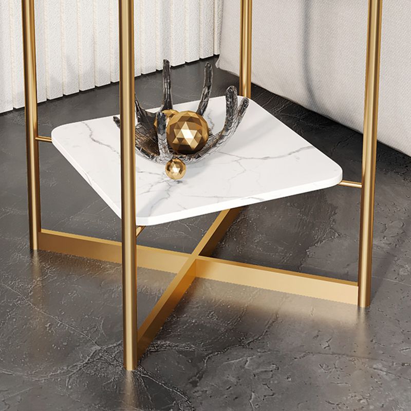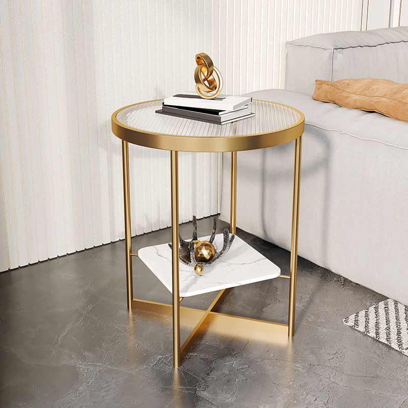 Dia 15.7"/19.7" Stone/Glass Round Side Table Shelf Included Cross Legs End Table