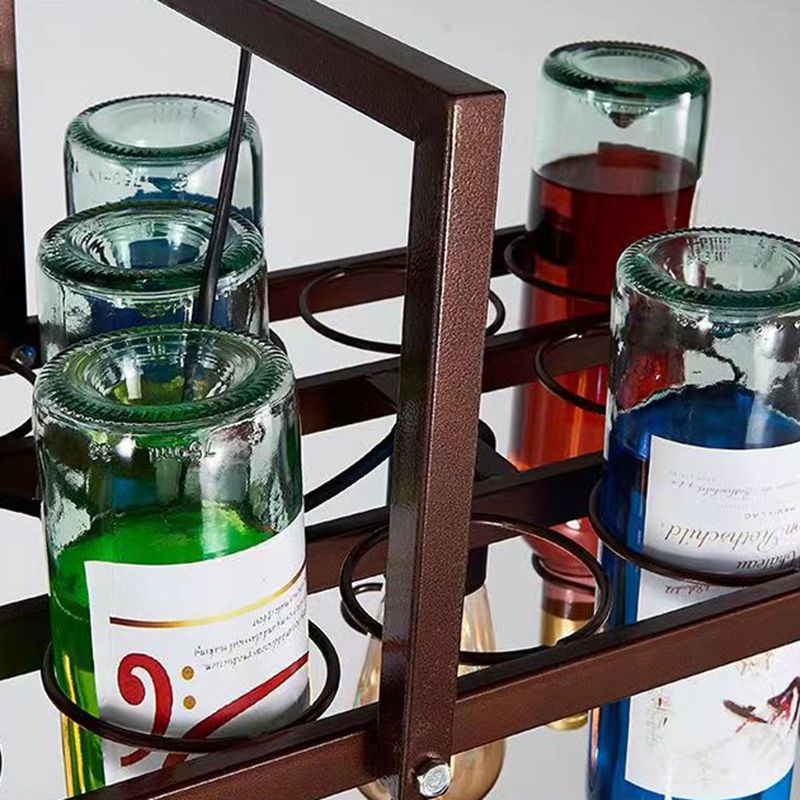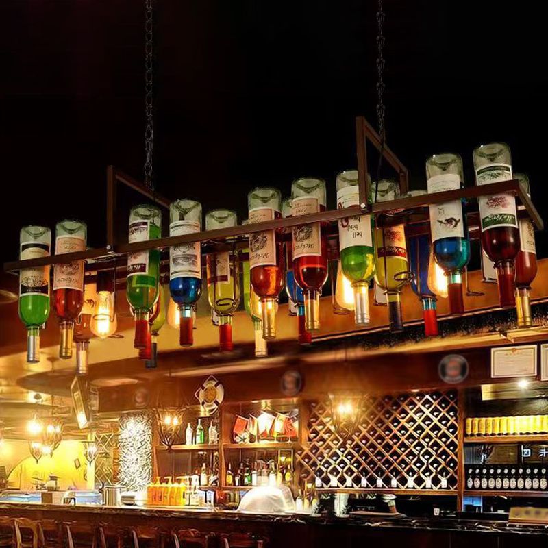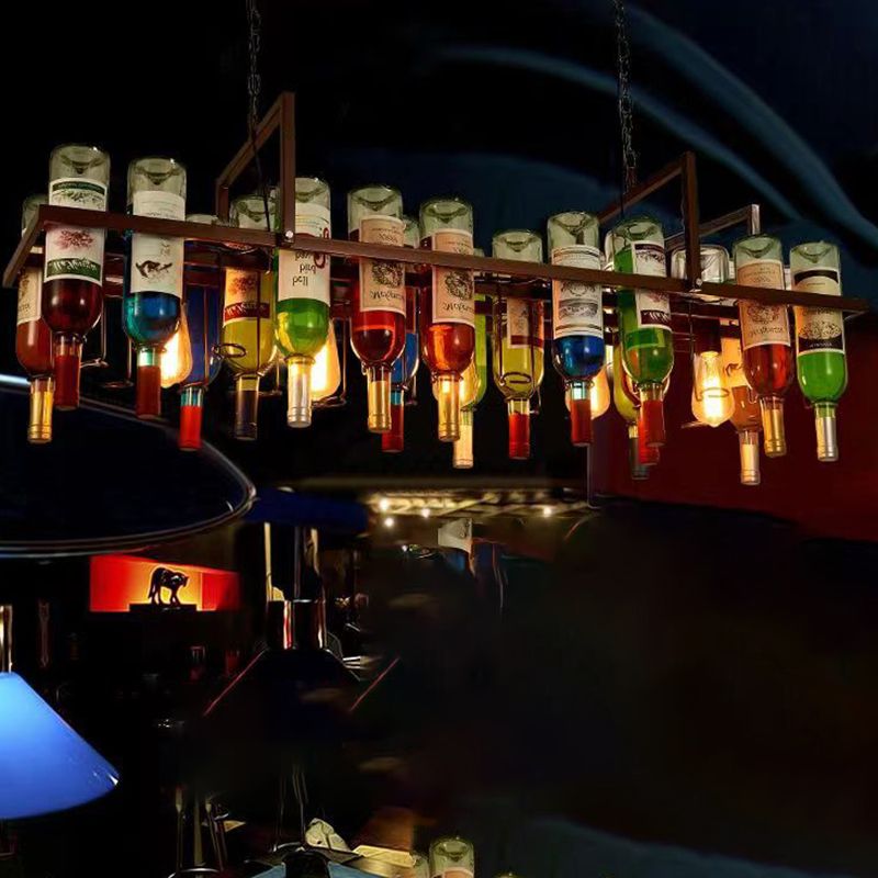 Industrial Style Hanging Lamp Iron Island Light for Dining Table (Included Wine Bottle)