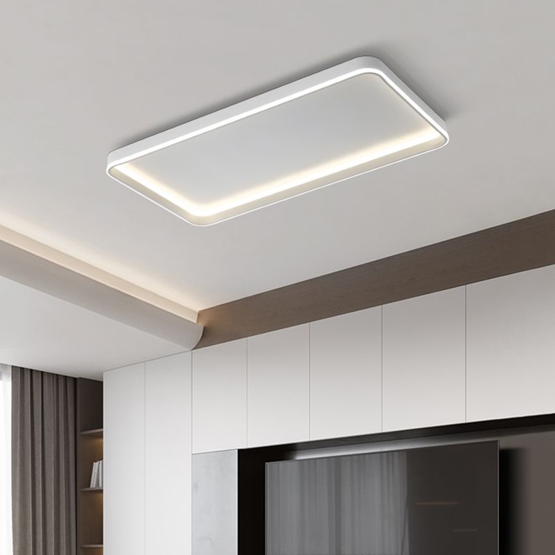 Minimalism Rectangular Flush Mount Ceiling Light Fixture in White for Living Room