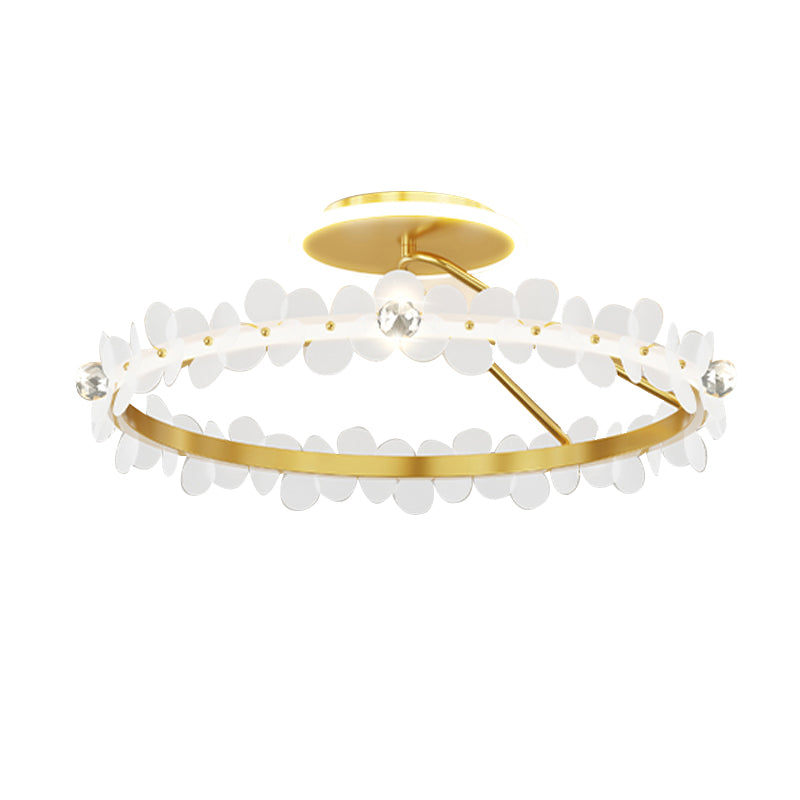 Modern Crystal Flush Mount Circle Shape Ceiling Light with Plastic Shade for Living Room