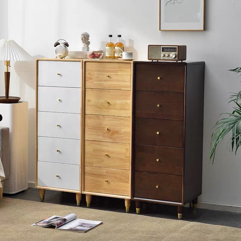 Modern Wooden Accent Chest 15.74" Wide Rubberwood Chest with 5 Drawers