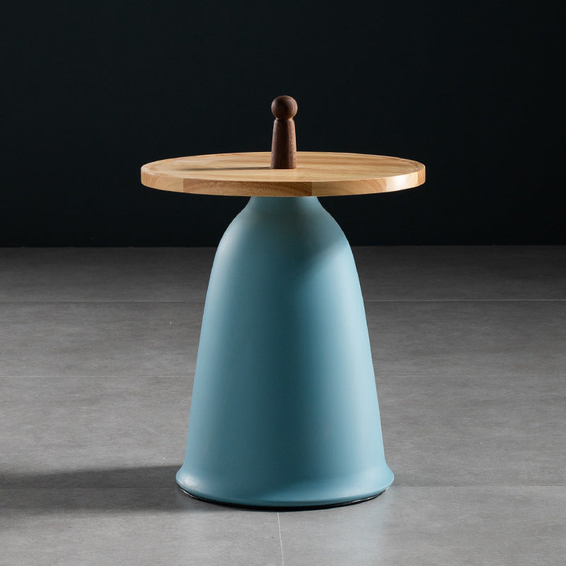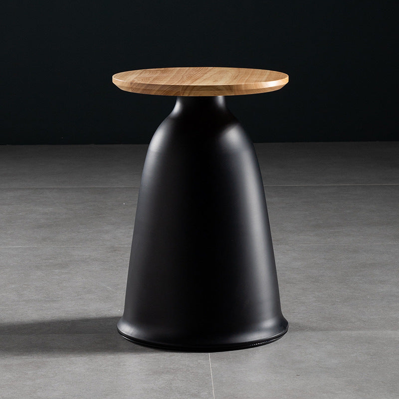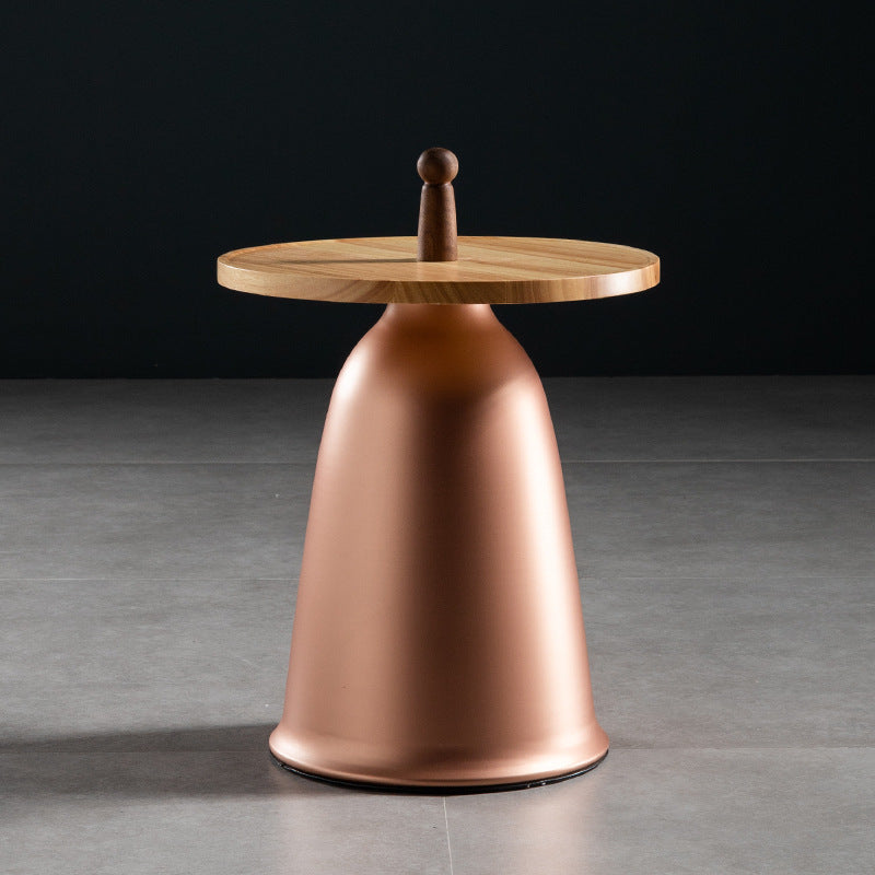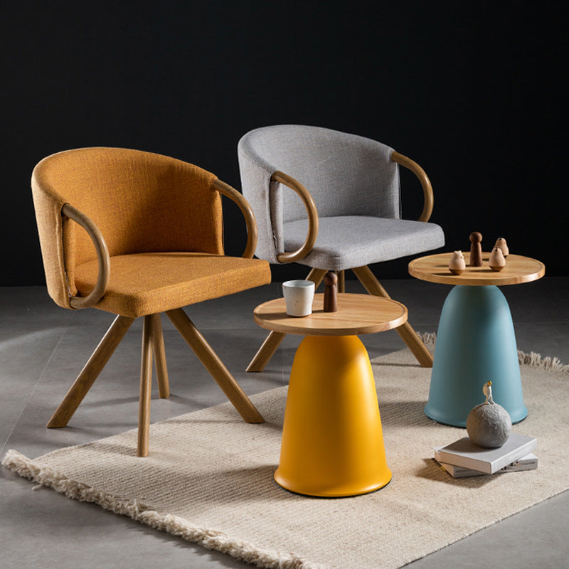 Nordic Style Round Coffee Table Wood Color Rubber Wood Top and Metal Base Cocktail Table