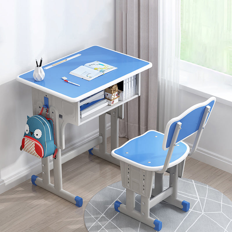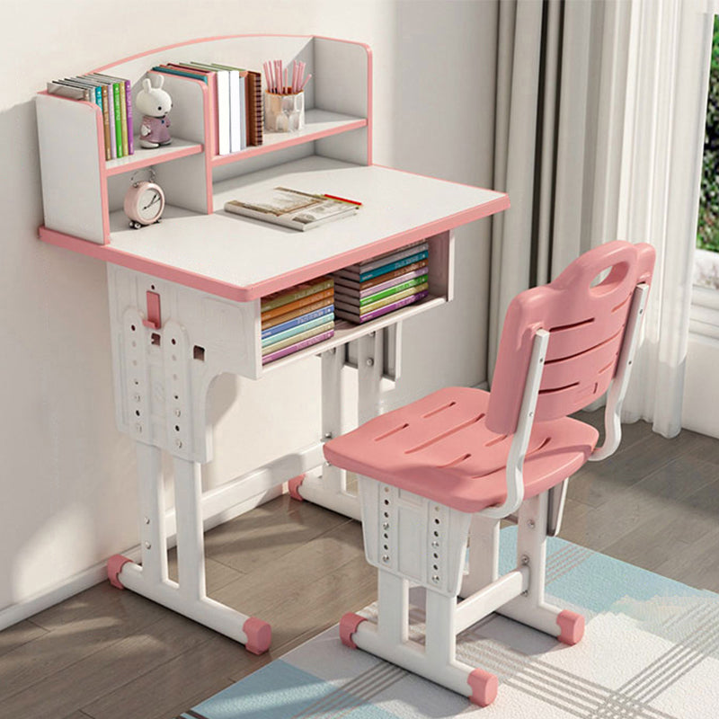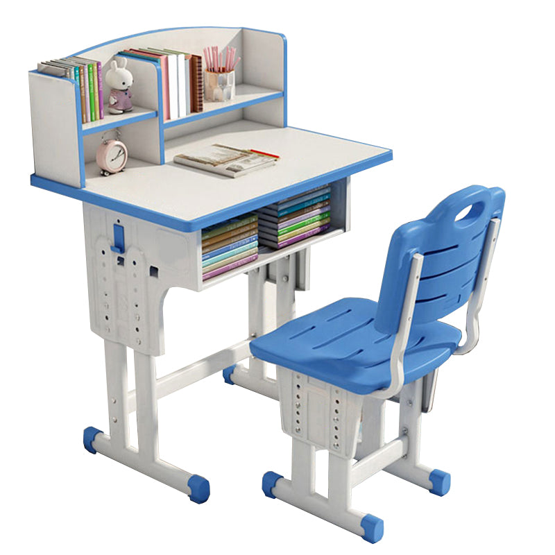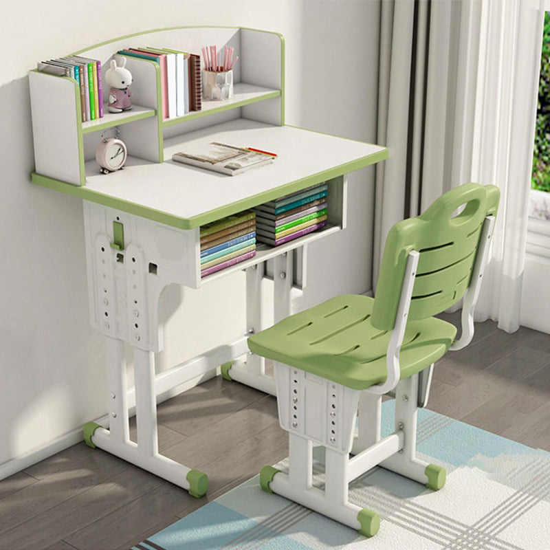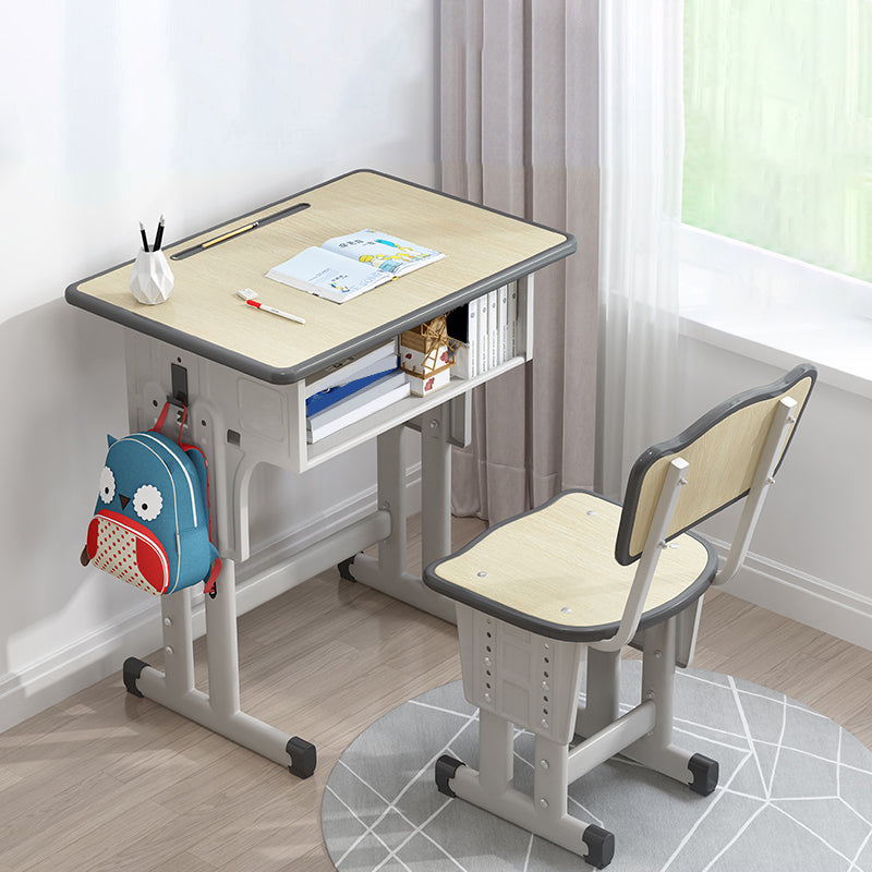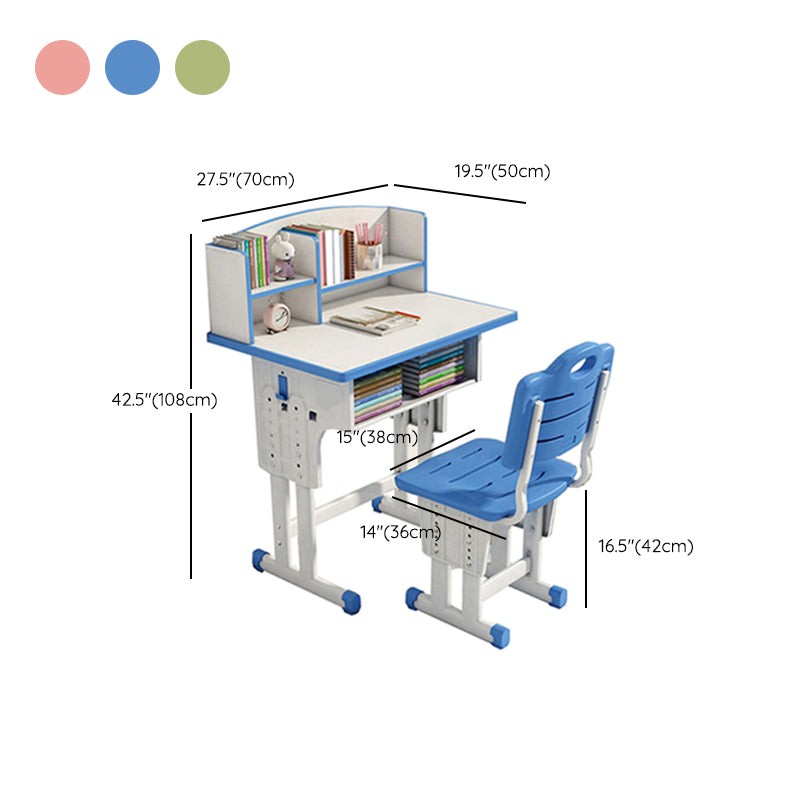 Adjustable Child Desk Solid Wood Desk and Chair Set with Bookshelf