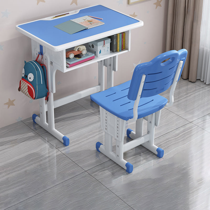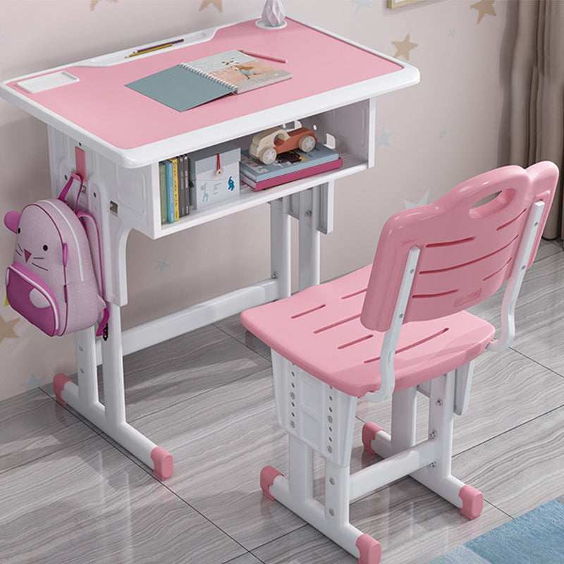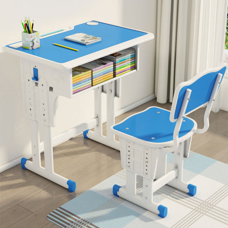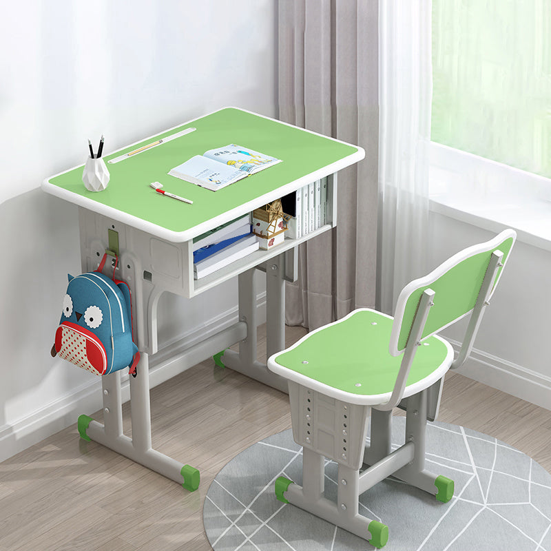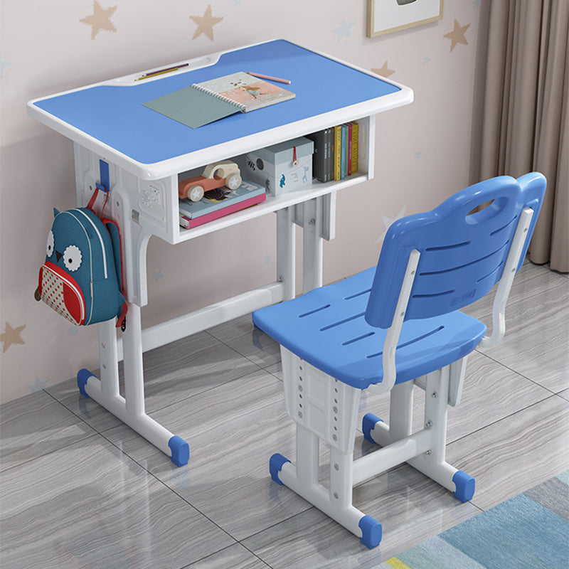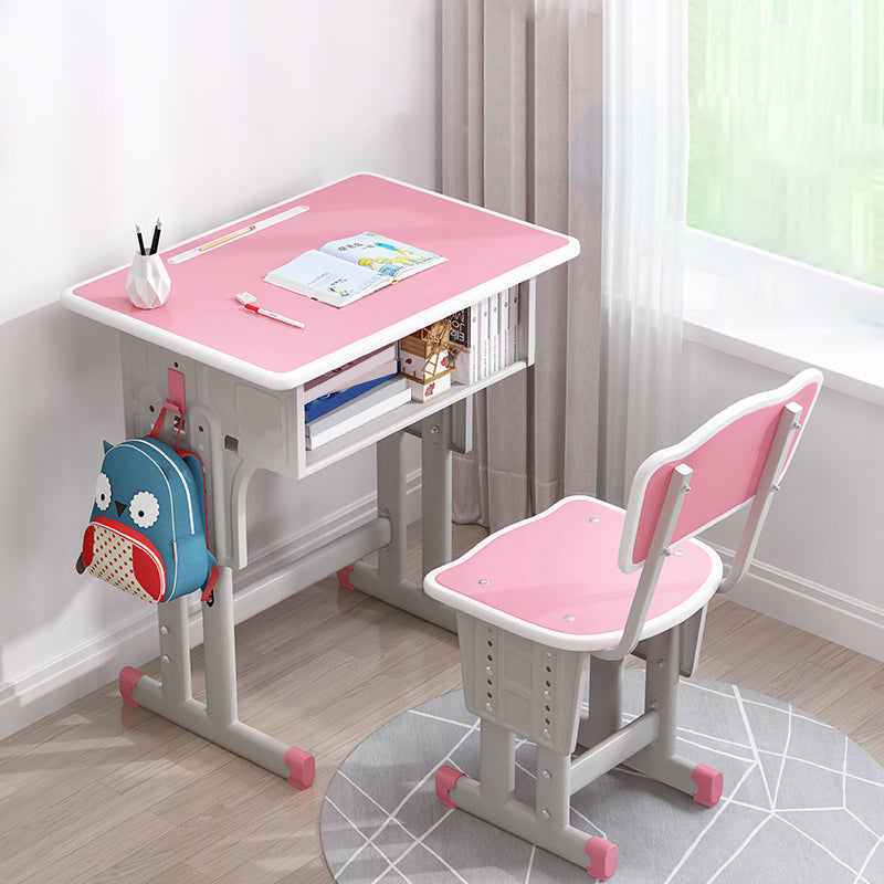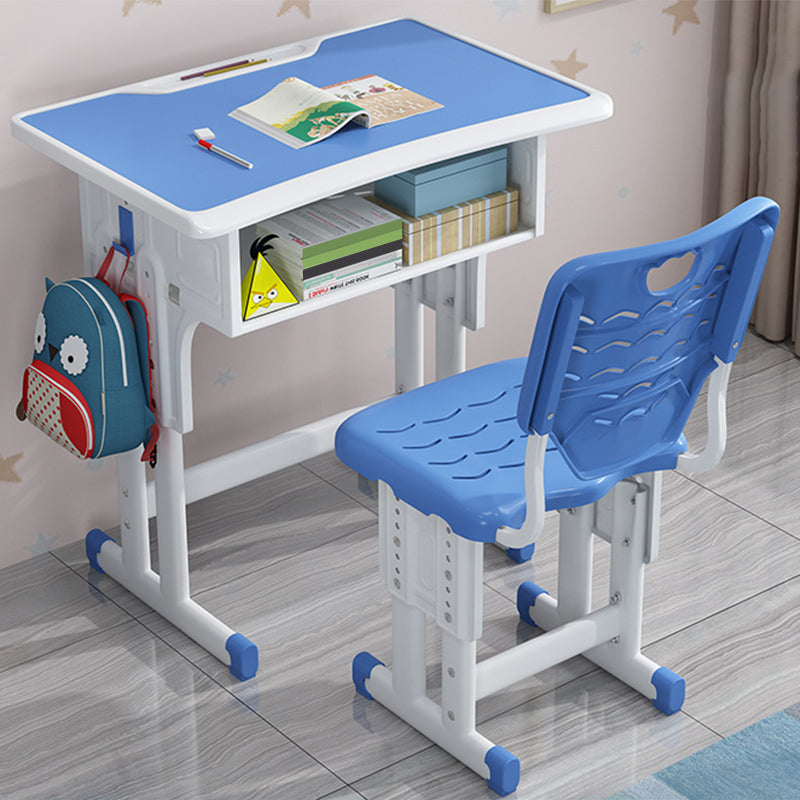 Adjustable Child Desk Solid Wood Desk and Chair Set with Bookshelf