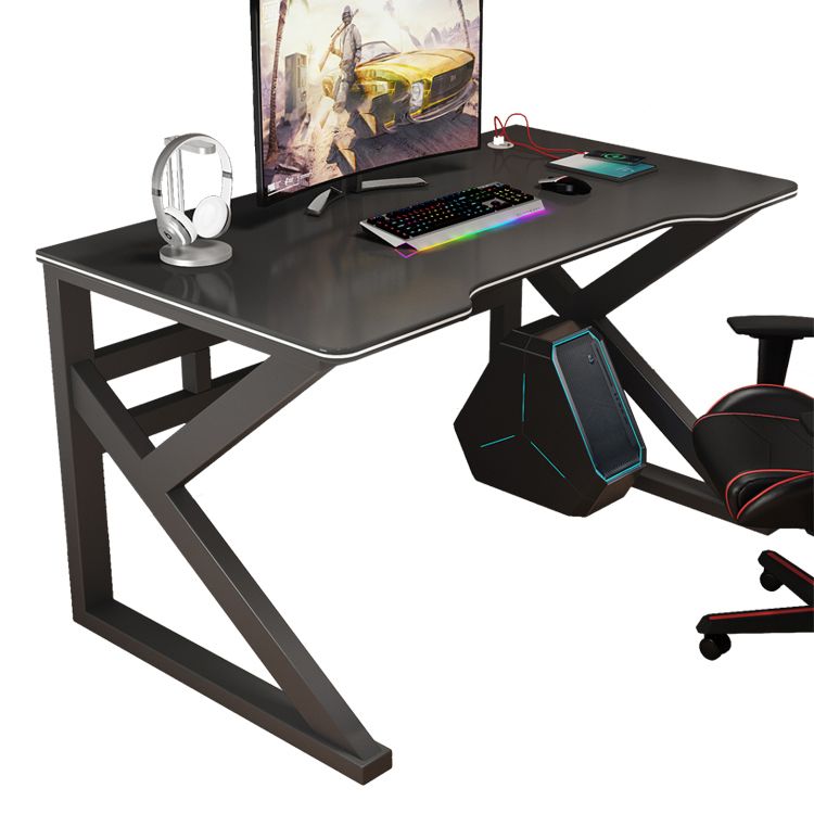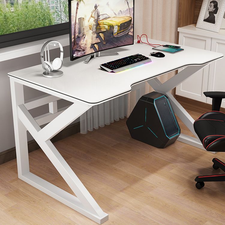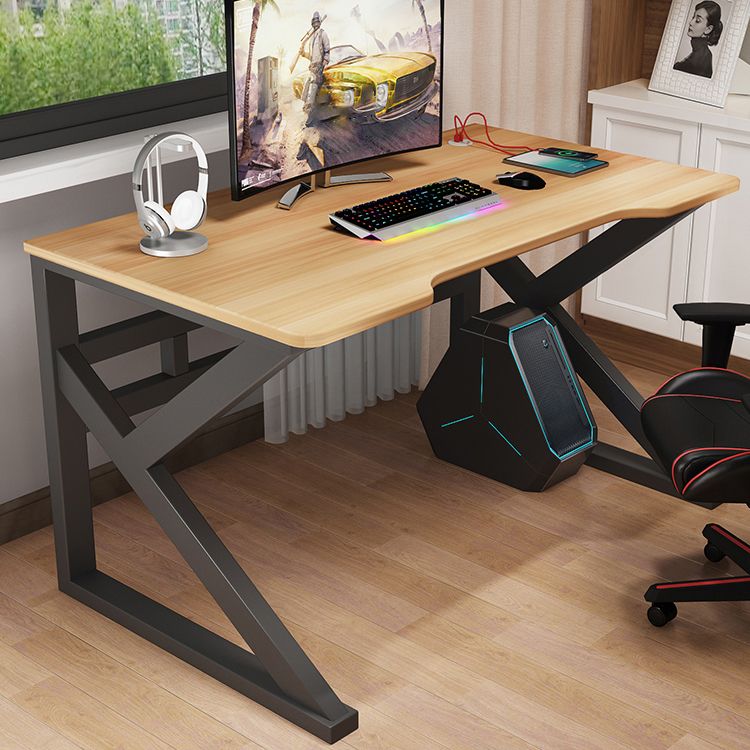 Modern Free Form Computer Desk Manufactured Wood Trestle Base Desk