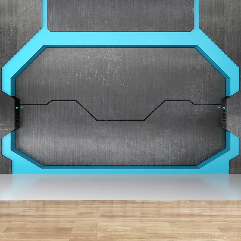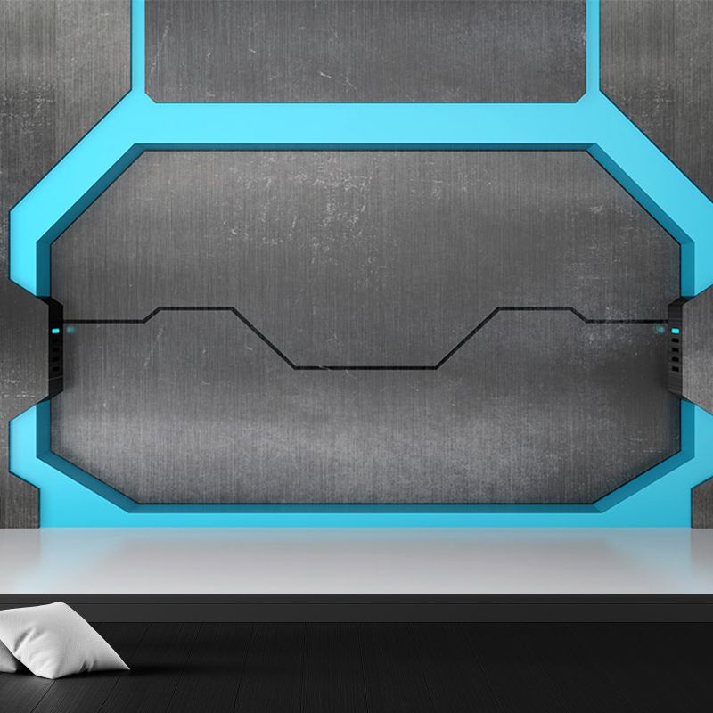 Non-Woven Bright Mural Science Fiction Aeroboat Door Print Wall Decor, Made to Measure