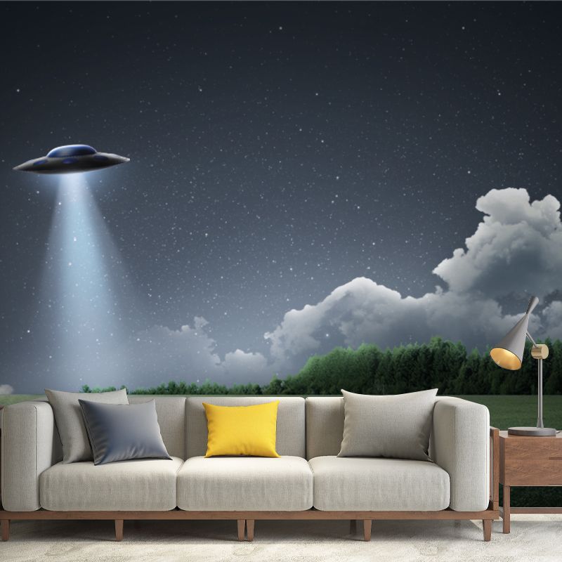 Photography Landing UFO Mural Wallpaper Whole Fictional Wall Decor for Bedroom, Custom Made