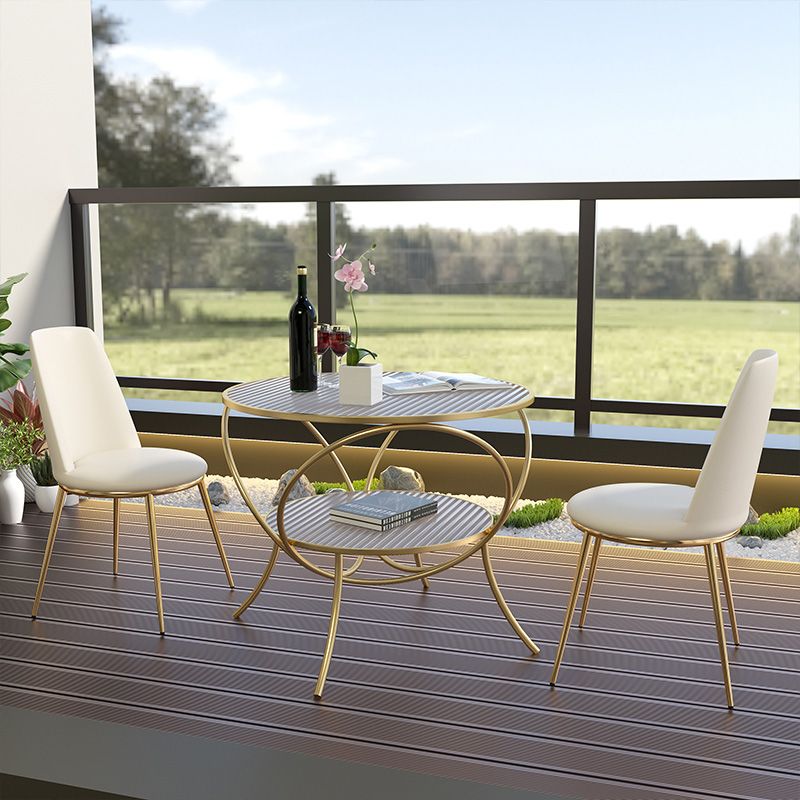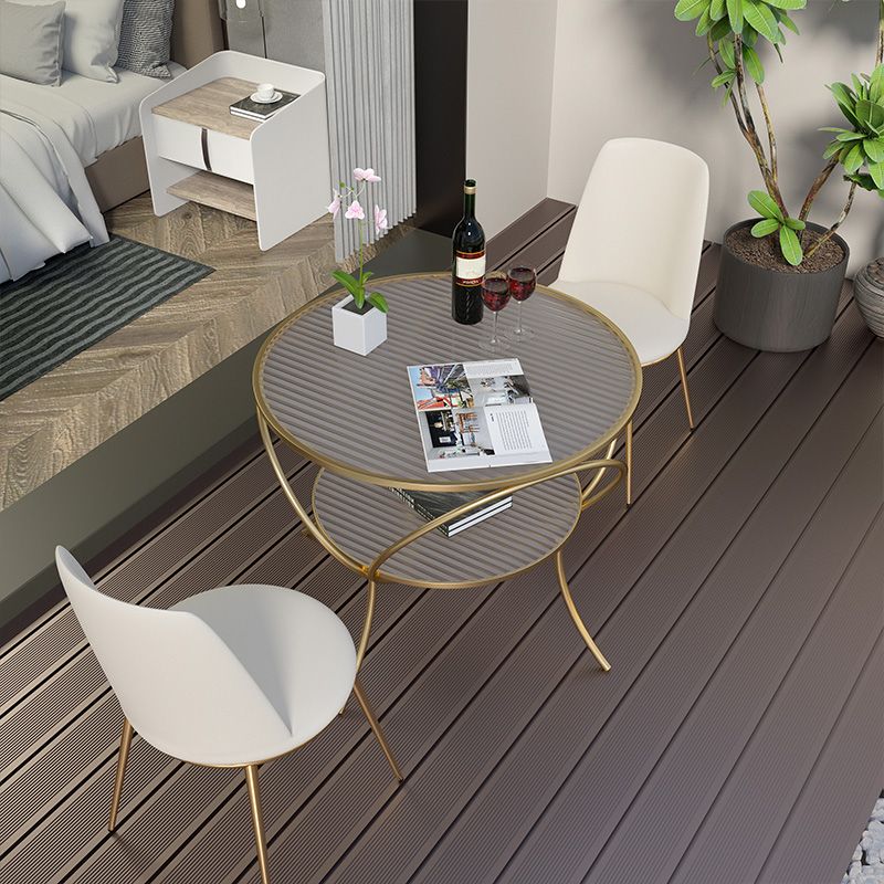 Round Shape Side Table Golden Farmhouse Style 2-Tier End Table