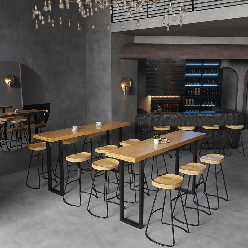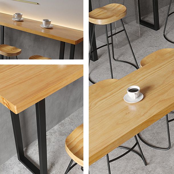 Solid Wood Bar Table Industrial Bar Dining Table with Black Sled Base