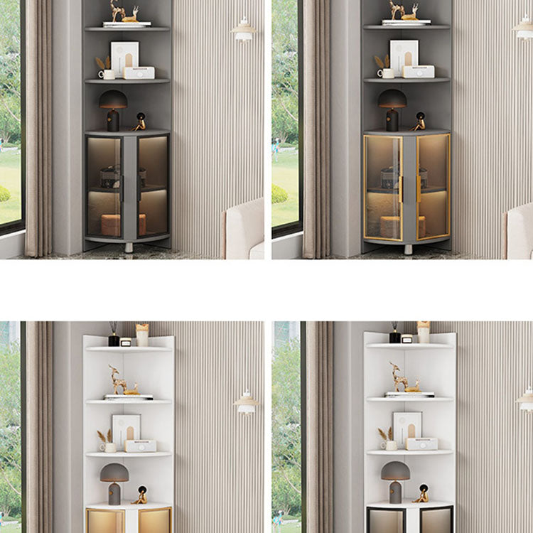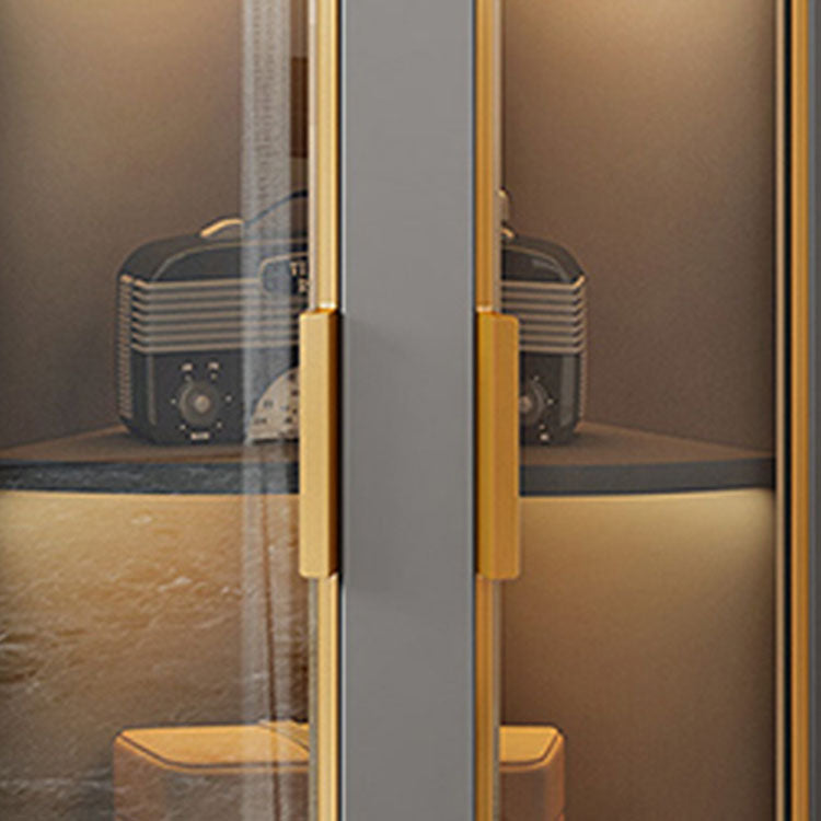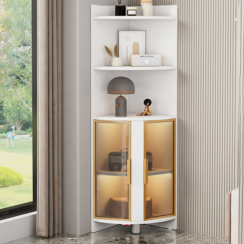 Wood Glass Paned Corner Modern Bar Pulls Accent Cabinet with Doors