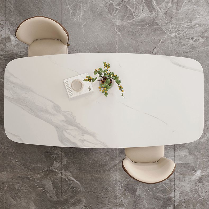 Glam Iron Dining Table Set 1/2/5 Pieces Rectangle White Sintered Stone Top Dinette Set