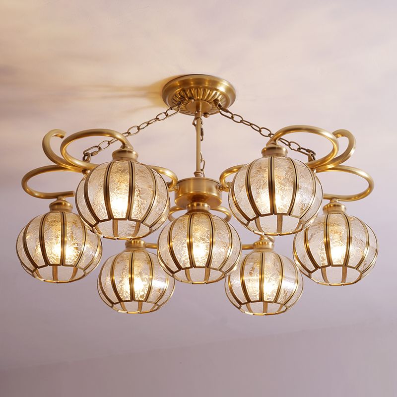 7 Heads Globe Semi Flush Light Traditional Gold Frosted Glass Ceiling Mounted Lamp