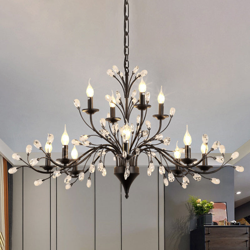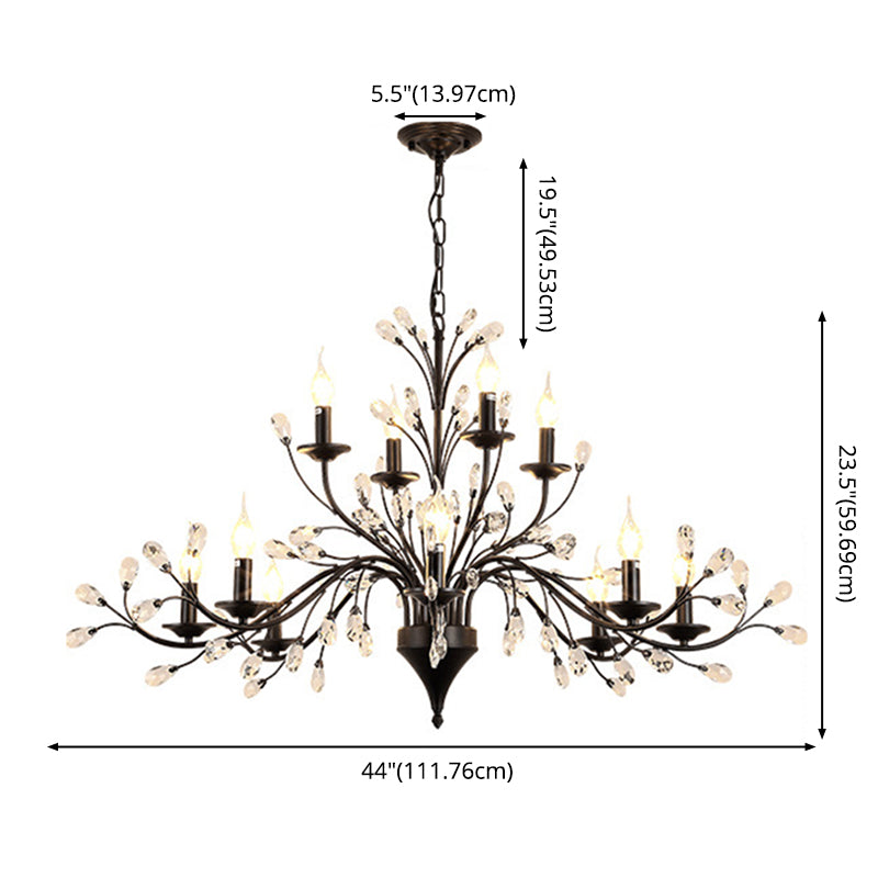 Black Tree Branch Shaped Hanging Light Vintage Crystal Living Room Ceiling Chandelier
