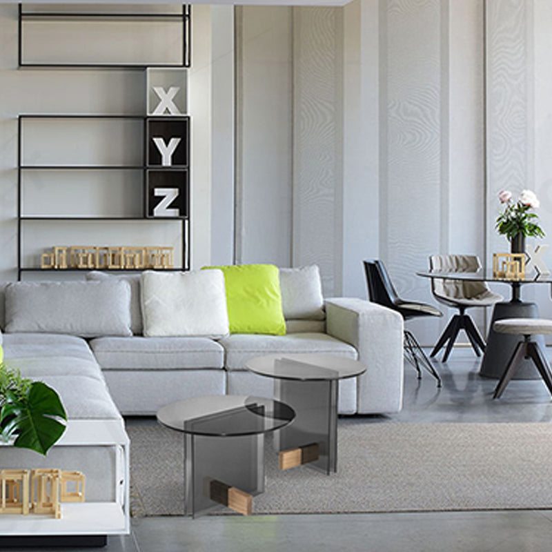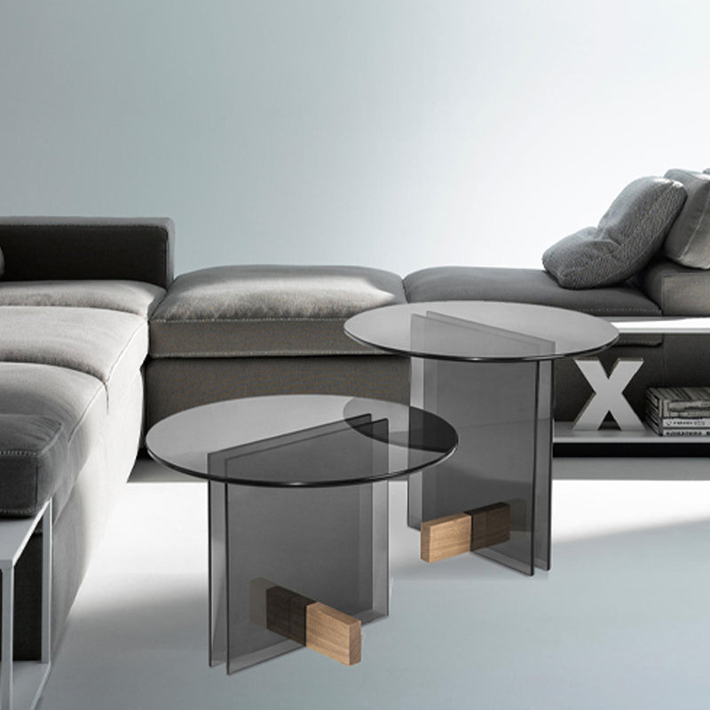 Contemporary Glass Top Abstract Round Living Room Side End Table