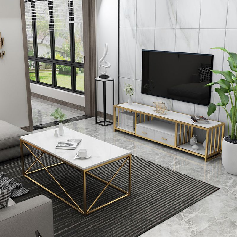 Contemporary Media Console TV Stand Open Storage TV Stand with Drawers