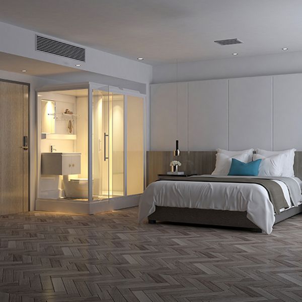 Contemporary Rectangle Shower Stall Clear Framed Shower Stall with Ceiling