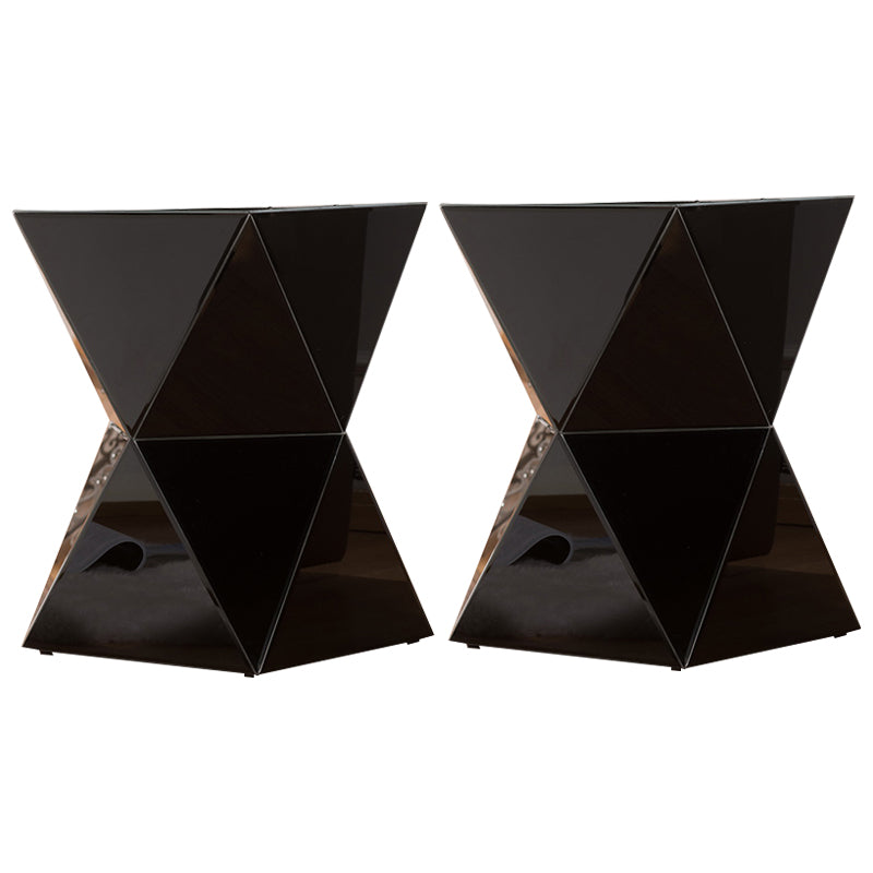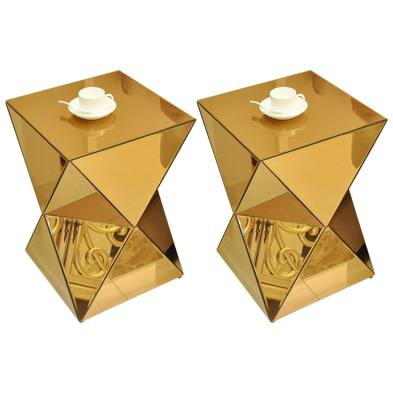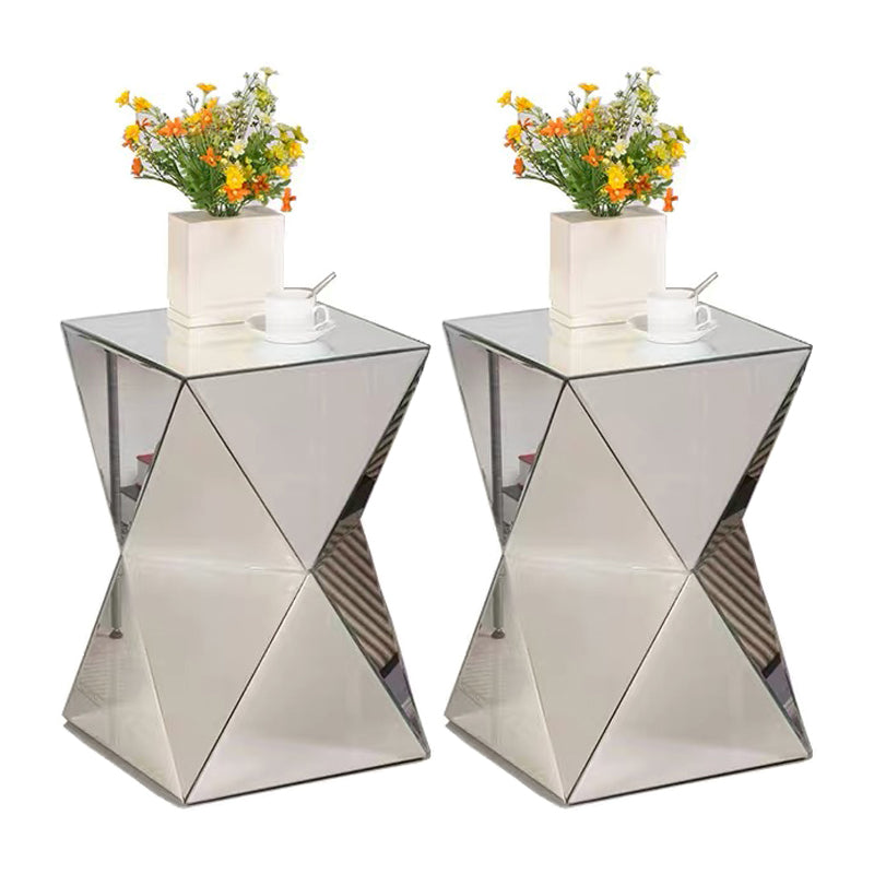Contemporary Side Table Glass Pedestal Square Living Room End Table