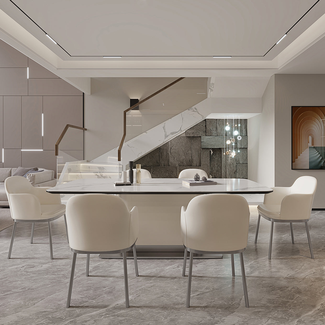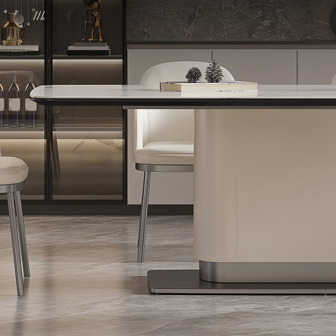 Contemporary White Stone Dining Set 1/4/7 Pieces Dining Table Set with Arm Chairs