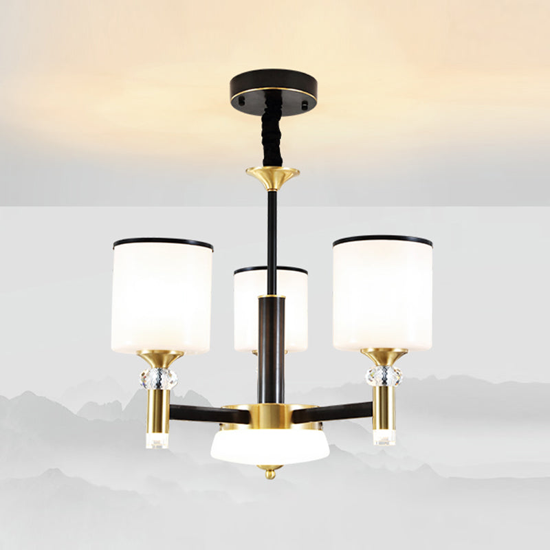 Cylinder Shade Chandelier Lighting American Style Glass Pendant Light for Living Room