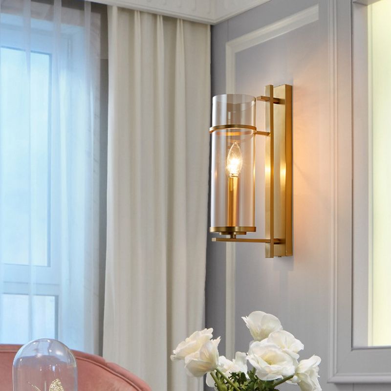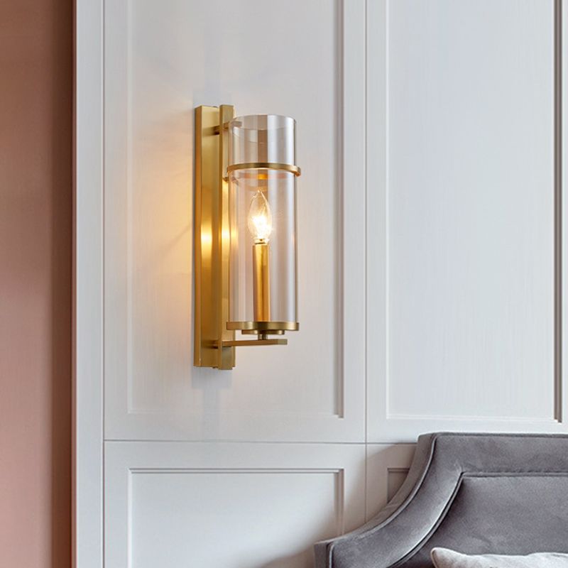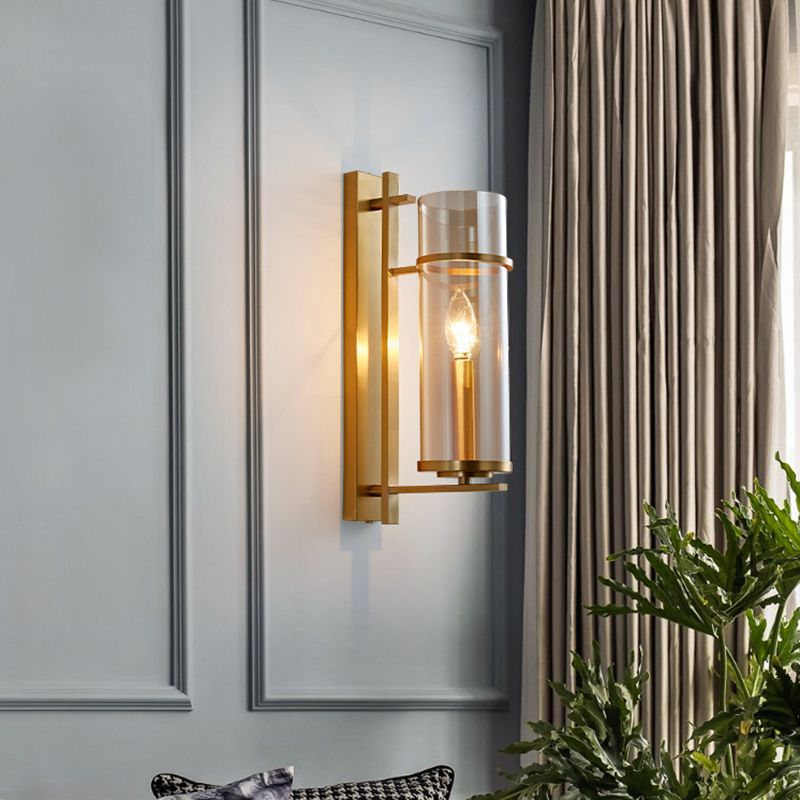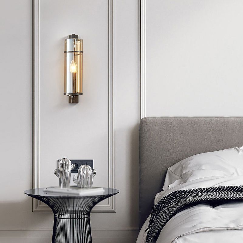 Cylinder Shape Glass Wall Light Modern Style 1 Light Wall Light Sconce
