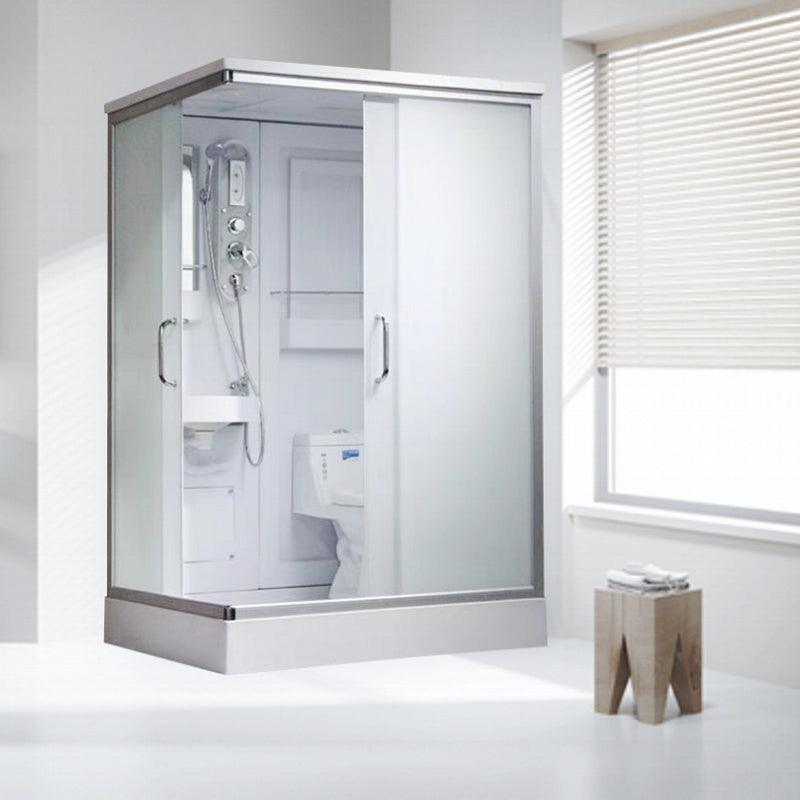 Double Sliding Rectangle Shower Kit White Frosted Shower Stall