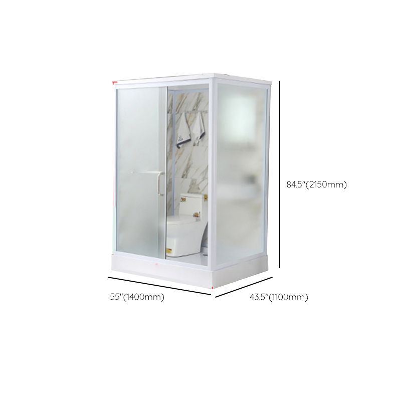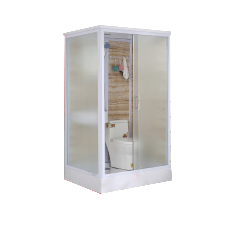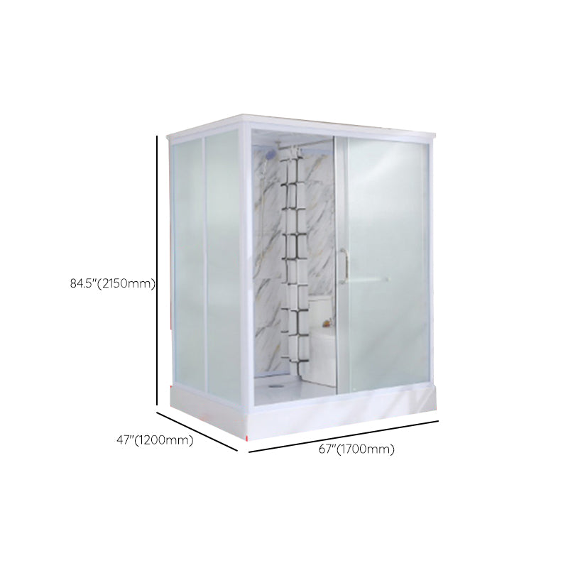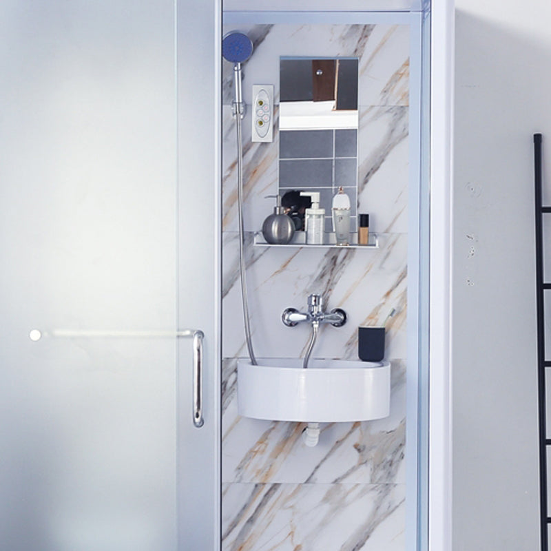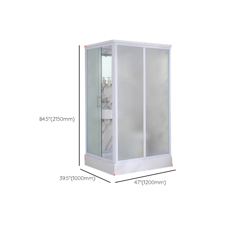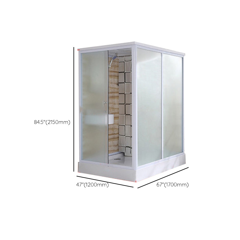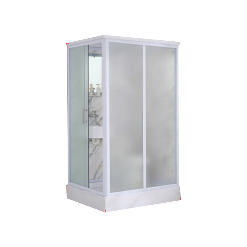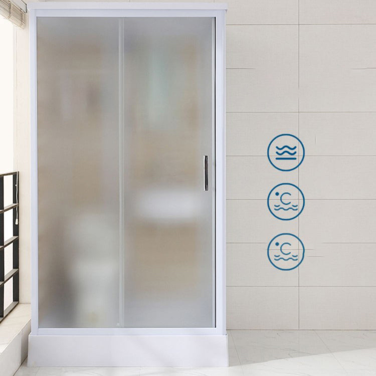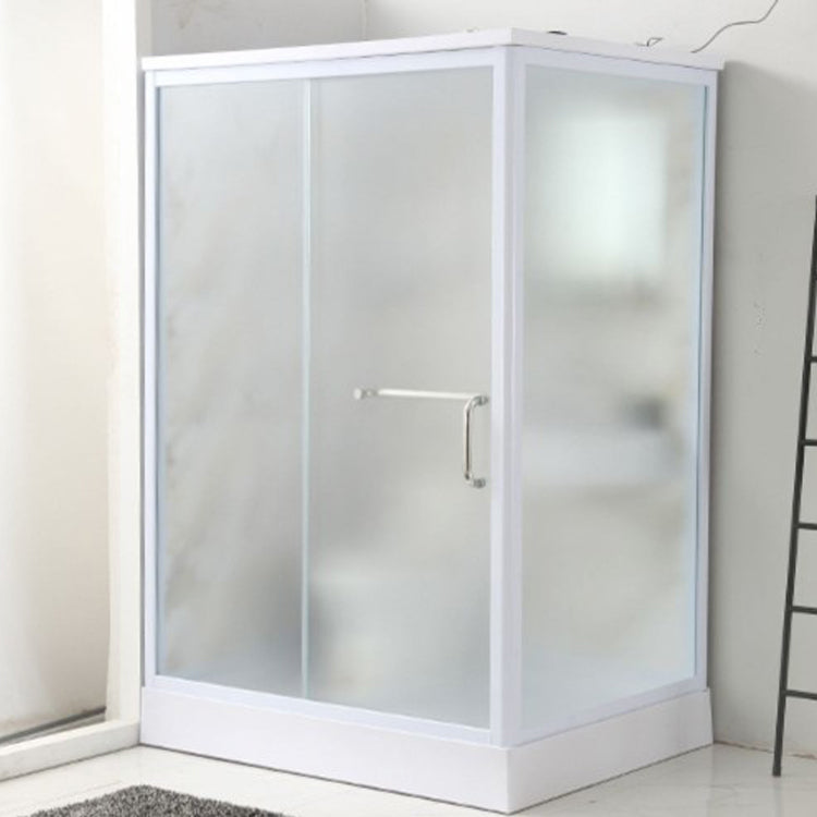 Framed Single Sliding Frosted Shower Kit Rectangle White Shower Stall