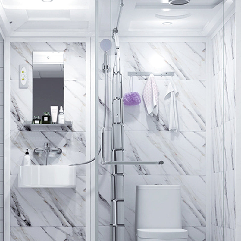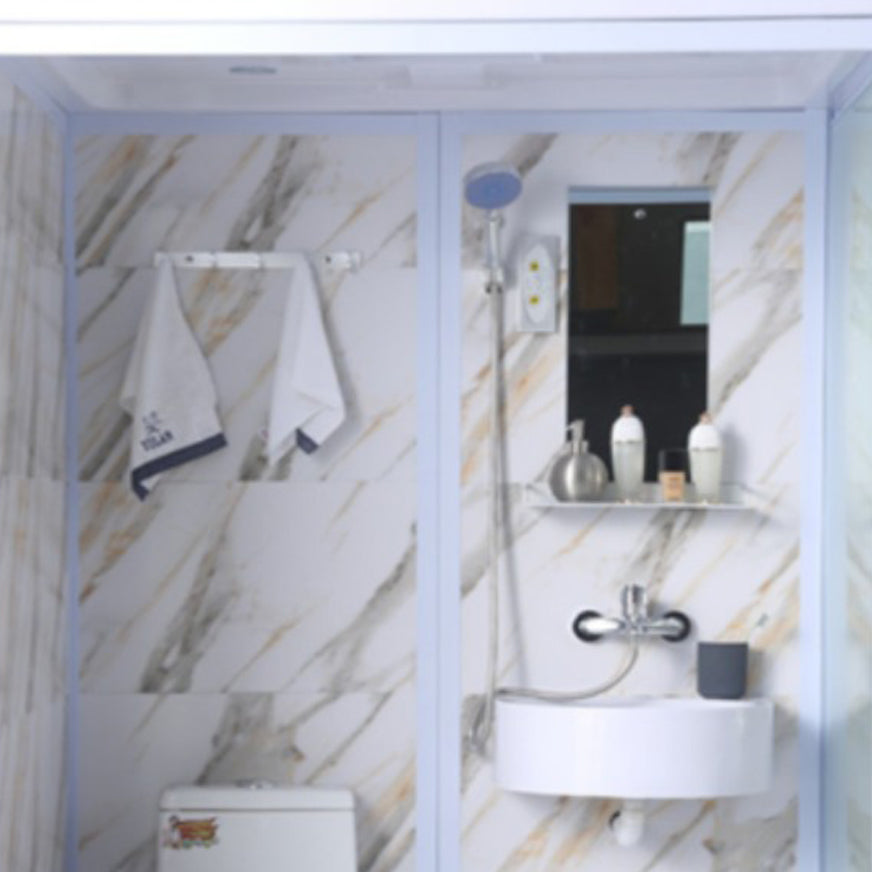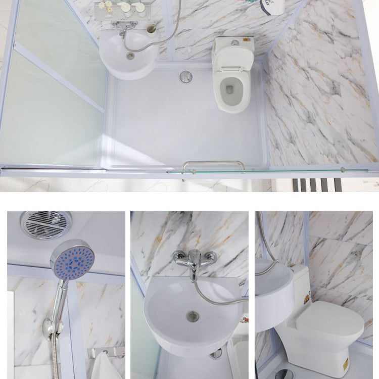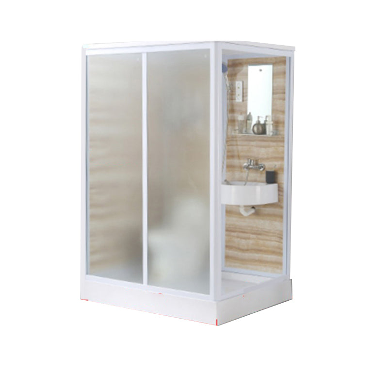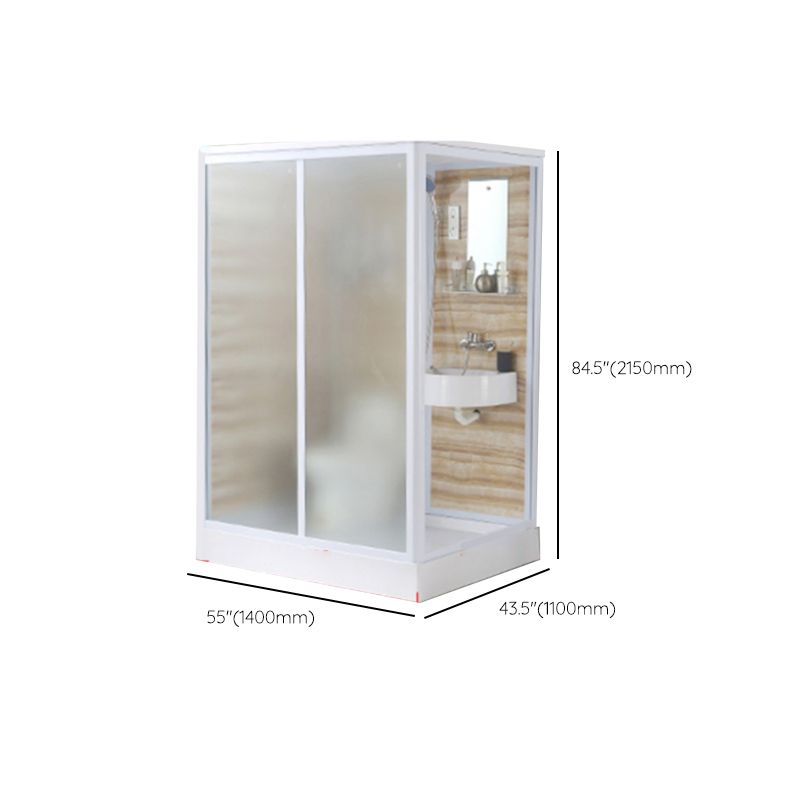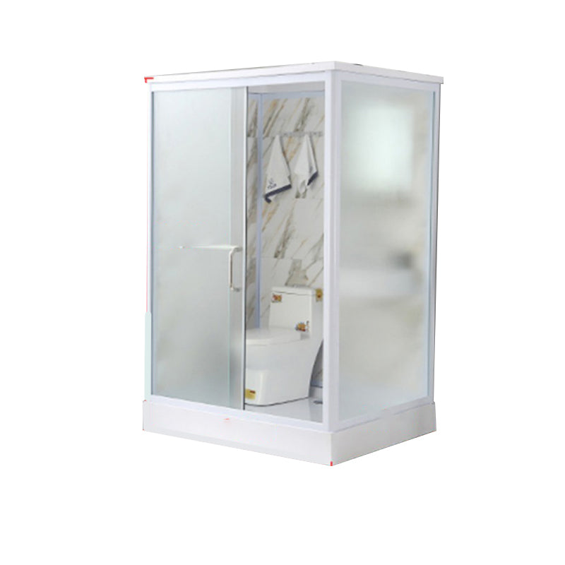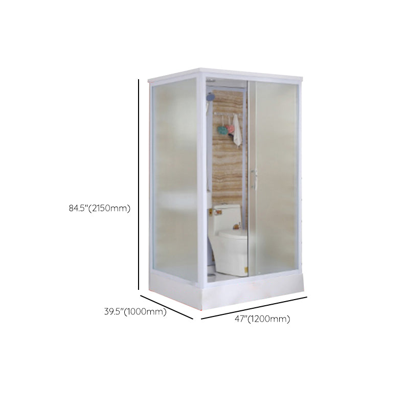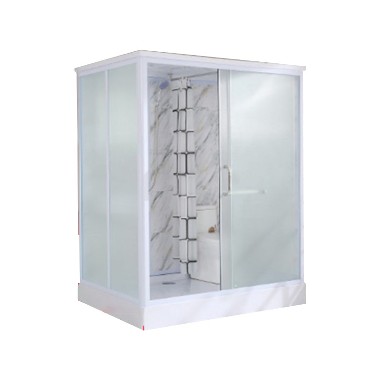 Framed Single Sliding Frosted Shower Kit Rectangle White Shower Stall