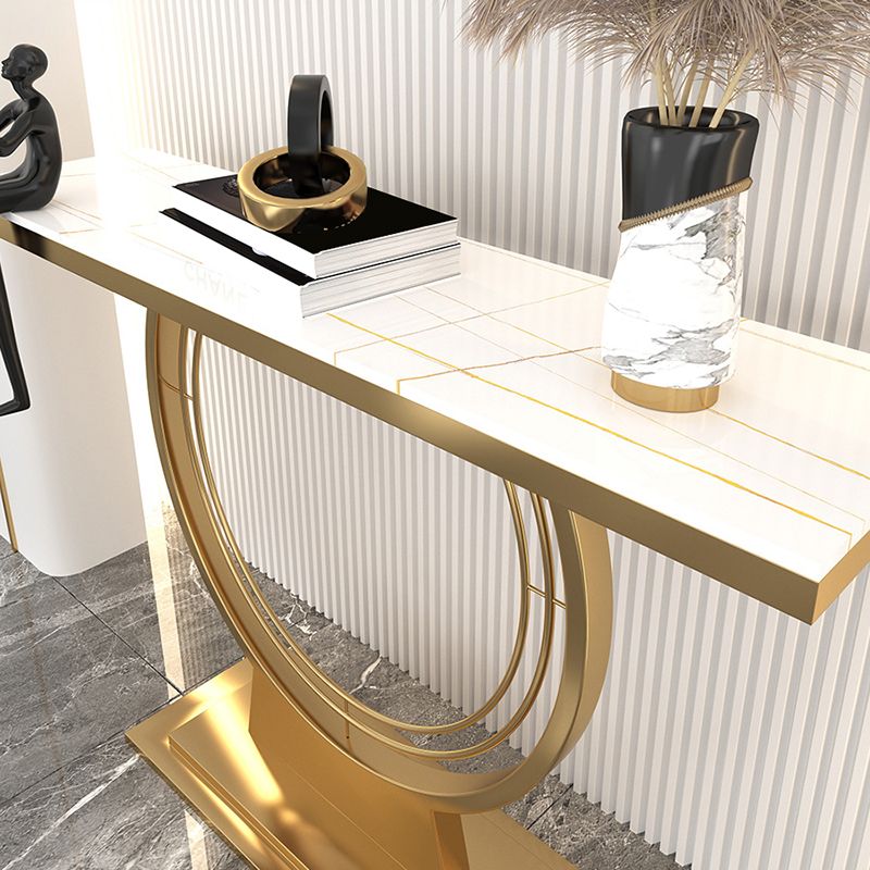 Glam Rectangle Console Table 31.5" Tall Stone Accent Table with 1 Shelf