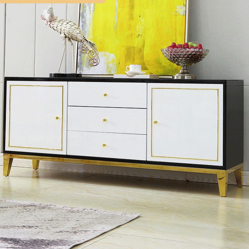 Glass TV Media Stand Enclosed Storage Media Console with Drawers