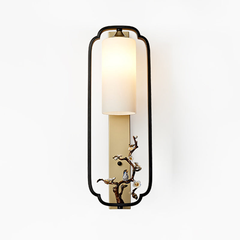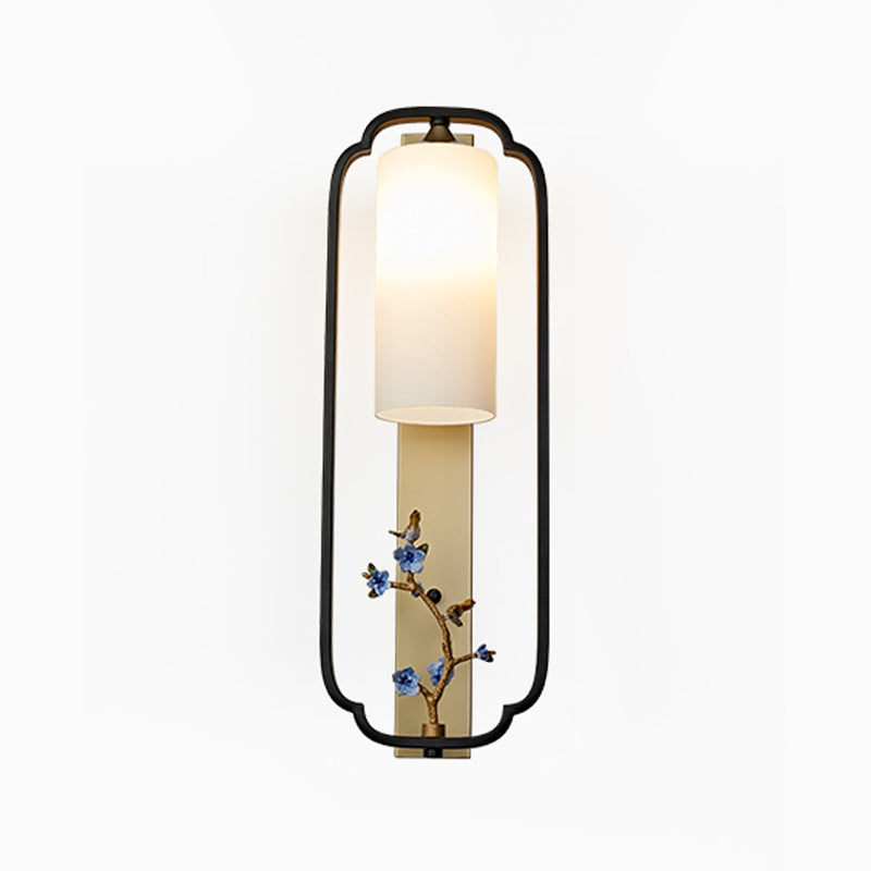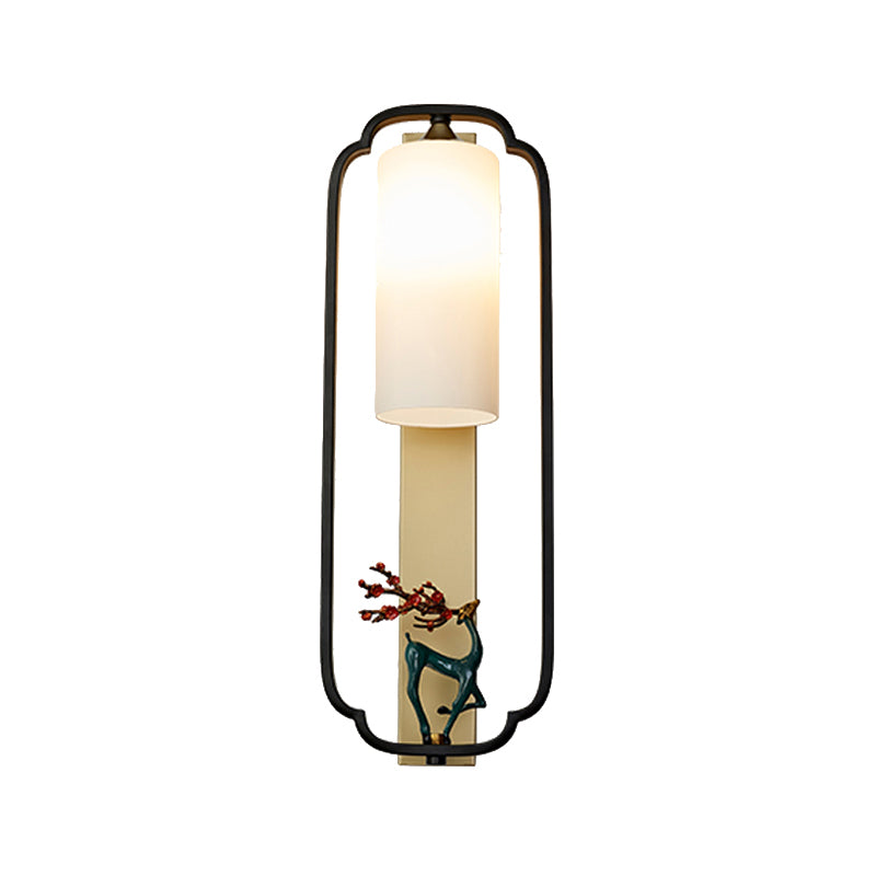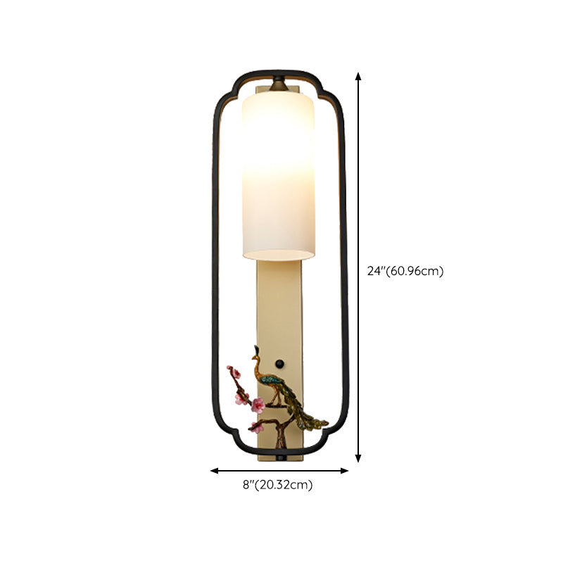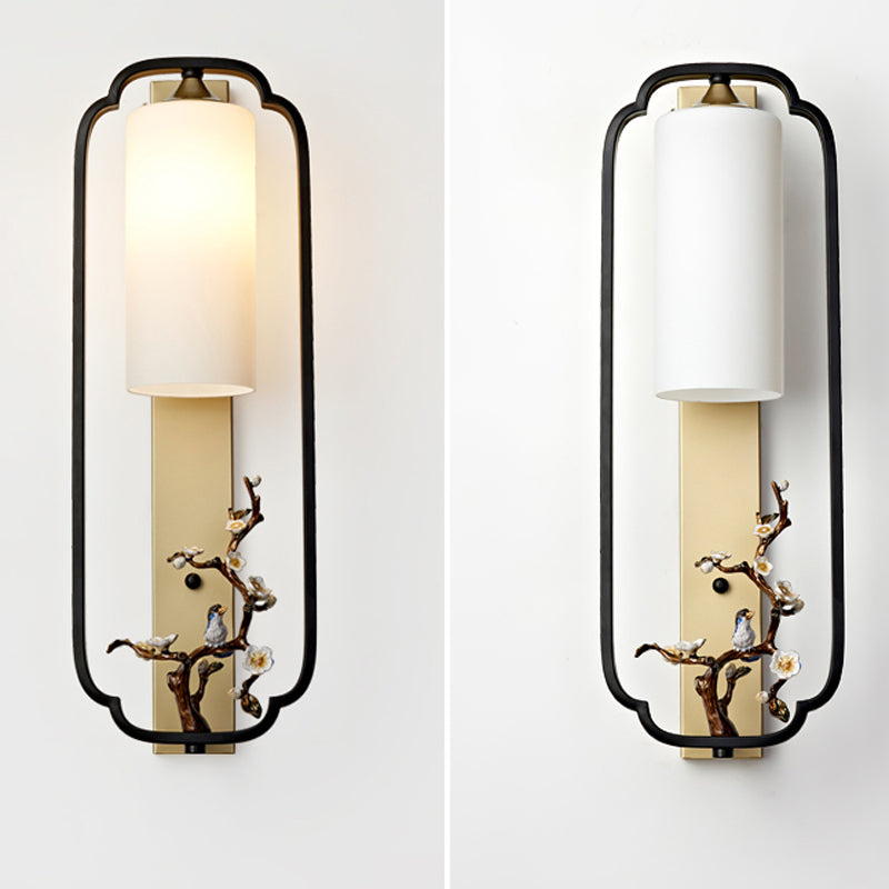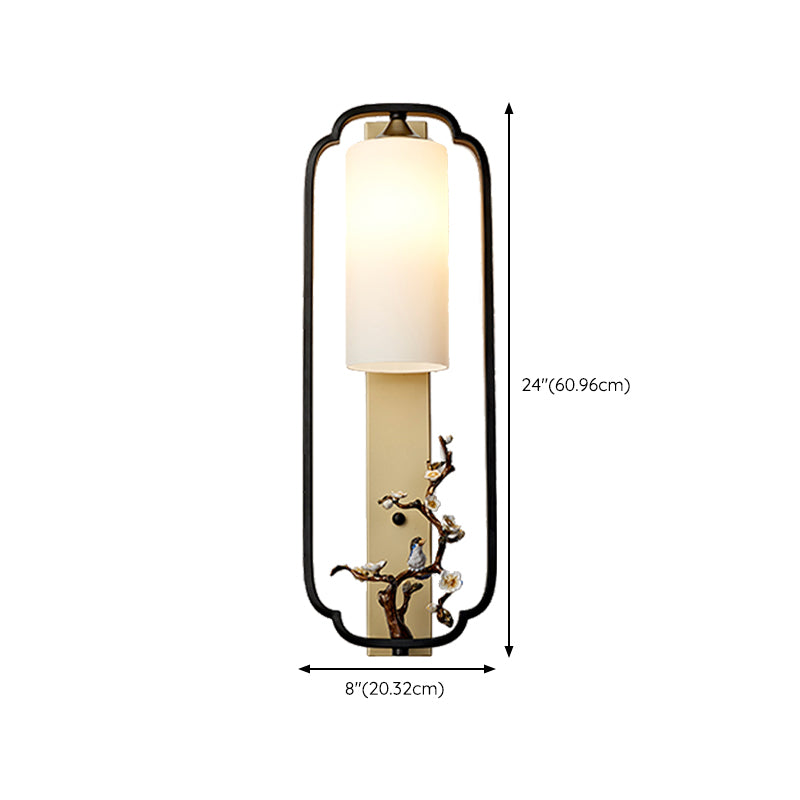 Metal Modern Wall Sconce Cylinder Shape Wall Light with Glass Shade for Bedroom