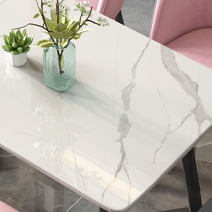 Modern Black Iron Dinette Set 1/2/5/7 Pieces Rectangle Sintered Stone Top Dining Table Set