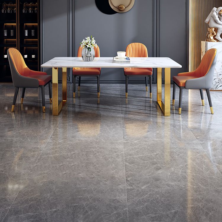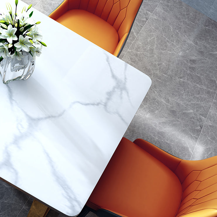 Modern Iron Dinette Set 1/2/5/7 Pieces White Rectangle Sintered Stone Top Dining Table Set