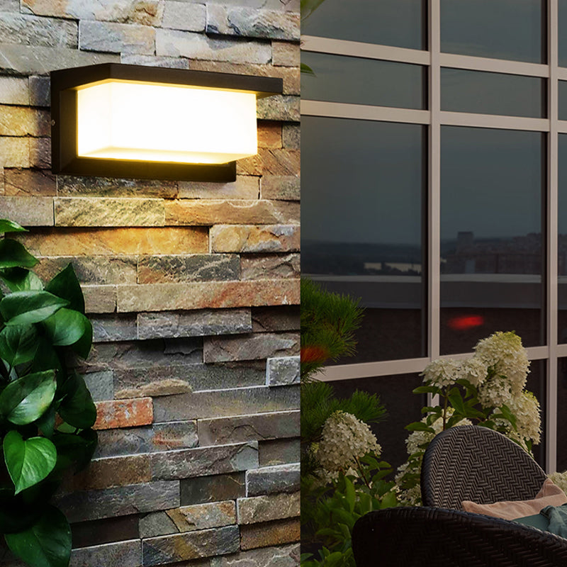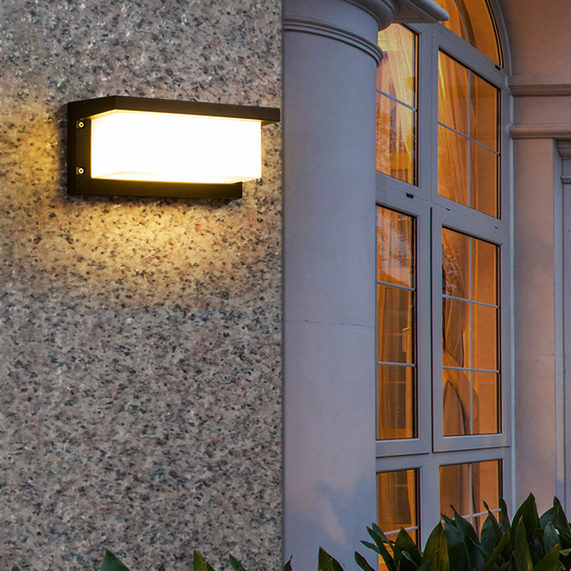 Modern Metal LED Wall Sconce Rectangle Shape Wall Light with Acrylic Shade for Courtyard