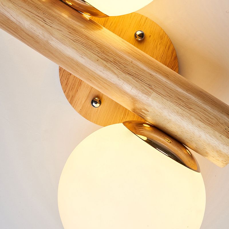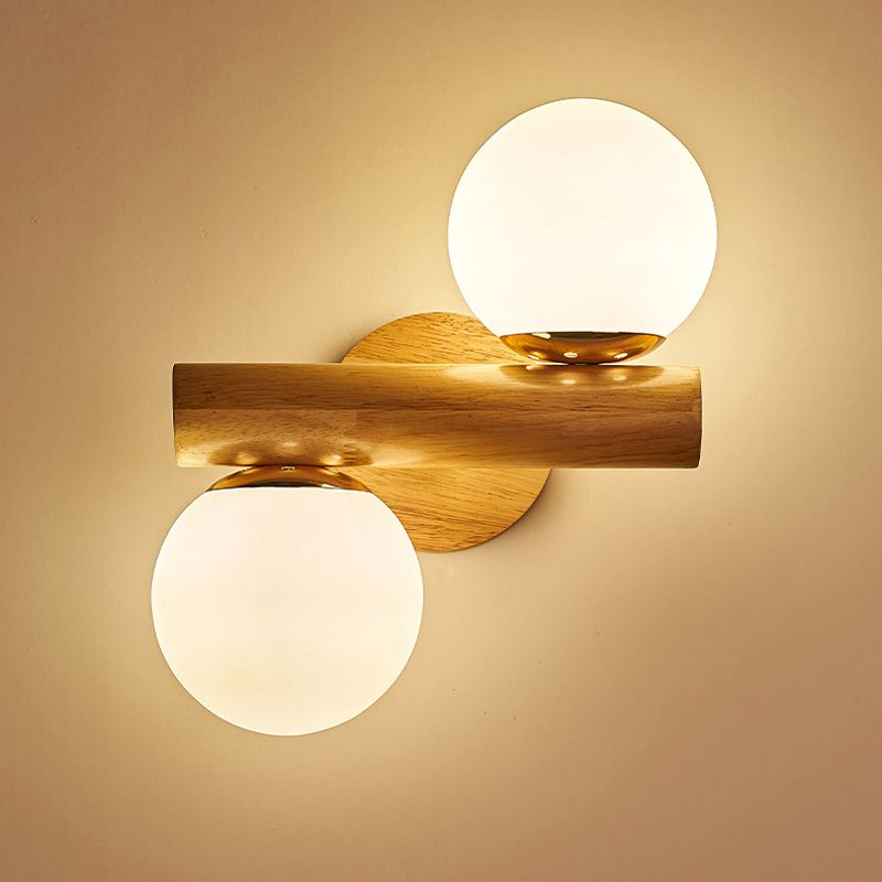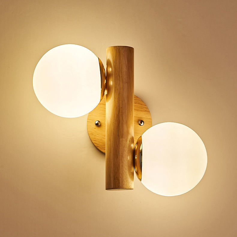 Modern Style Ball Shade Wall Light Wood 2 Lights Sconces for Bedroom